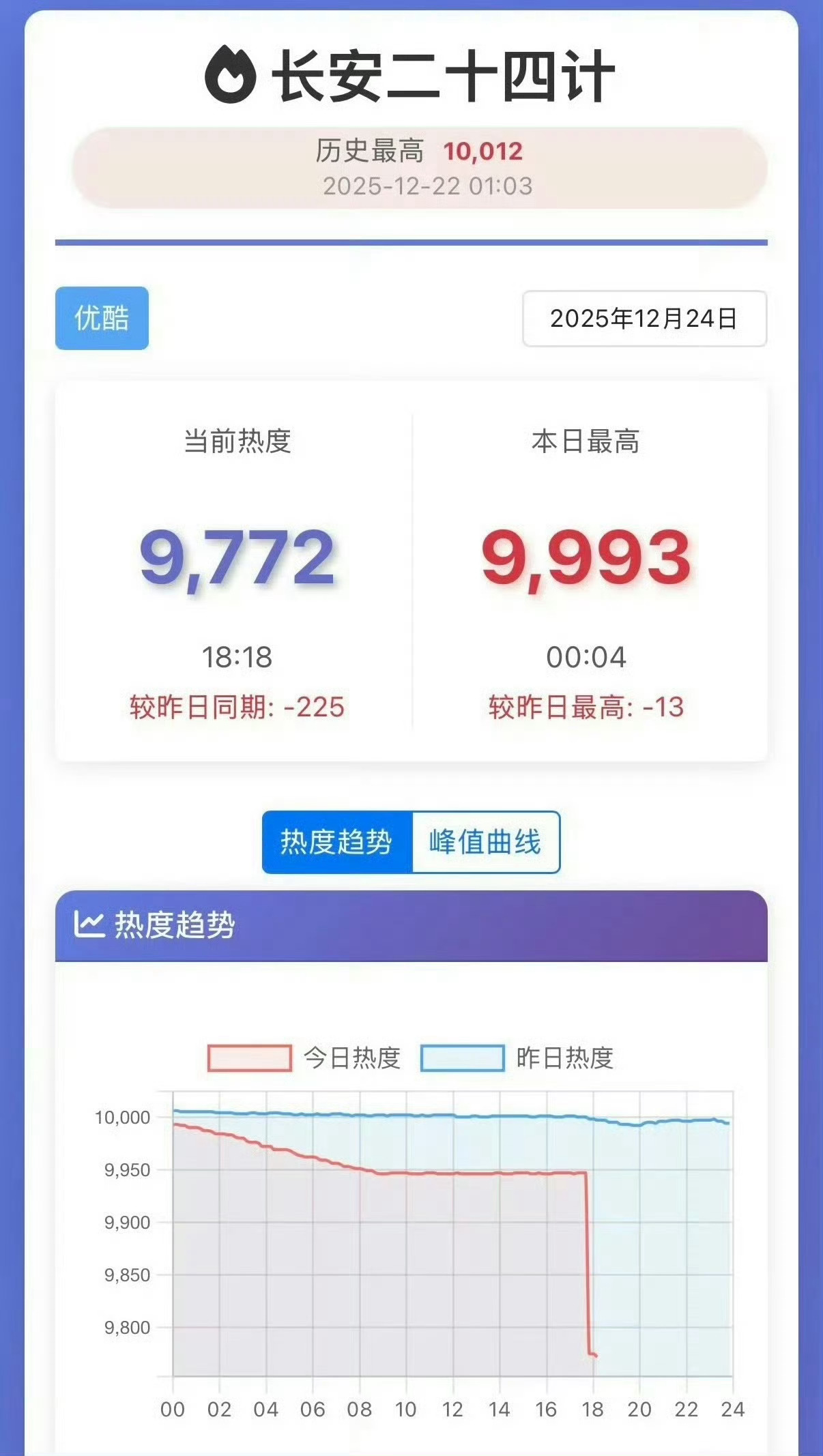 ……完成破w之后,热度火速下坠,之选下降,就说这个24计是纯粉丝剧没有观众入场吧,程序员键盘一松就现原形了。注意,它破万天数只维持两天,满天破万仅一天,优酷热度破万史上数据最差的一部剧。