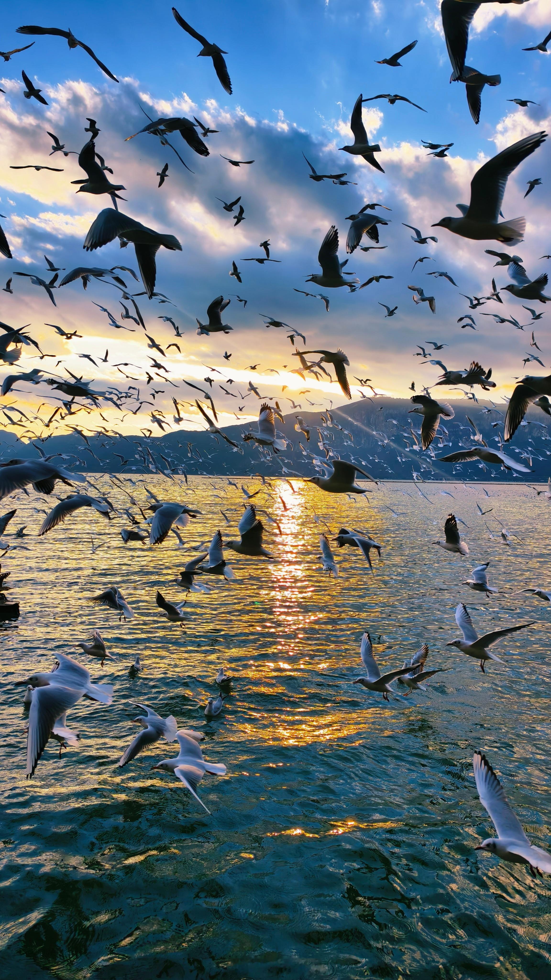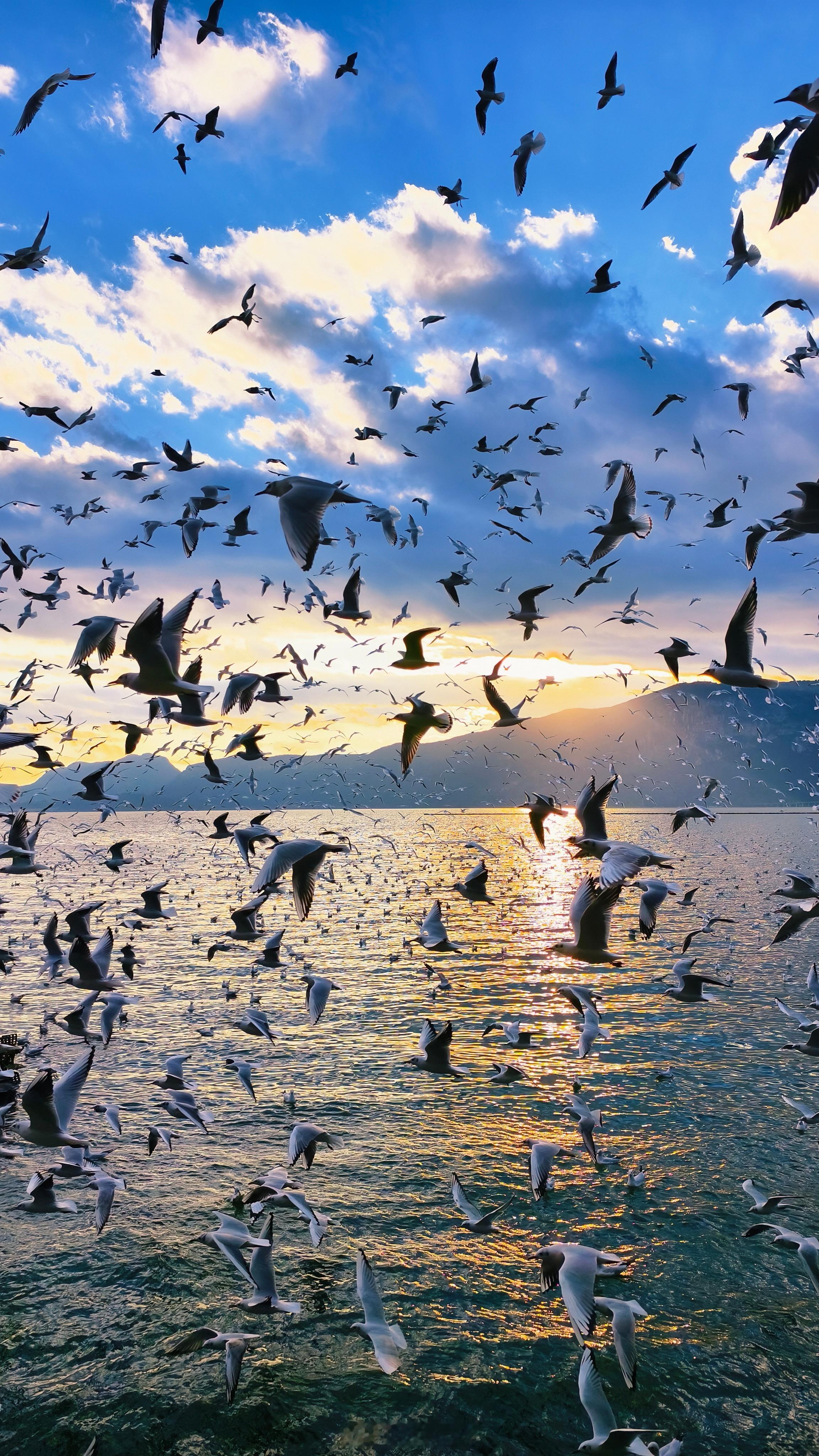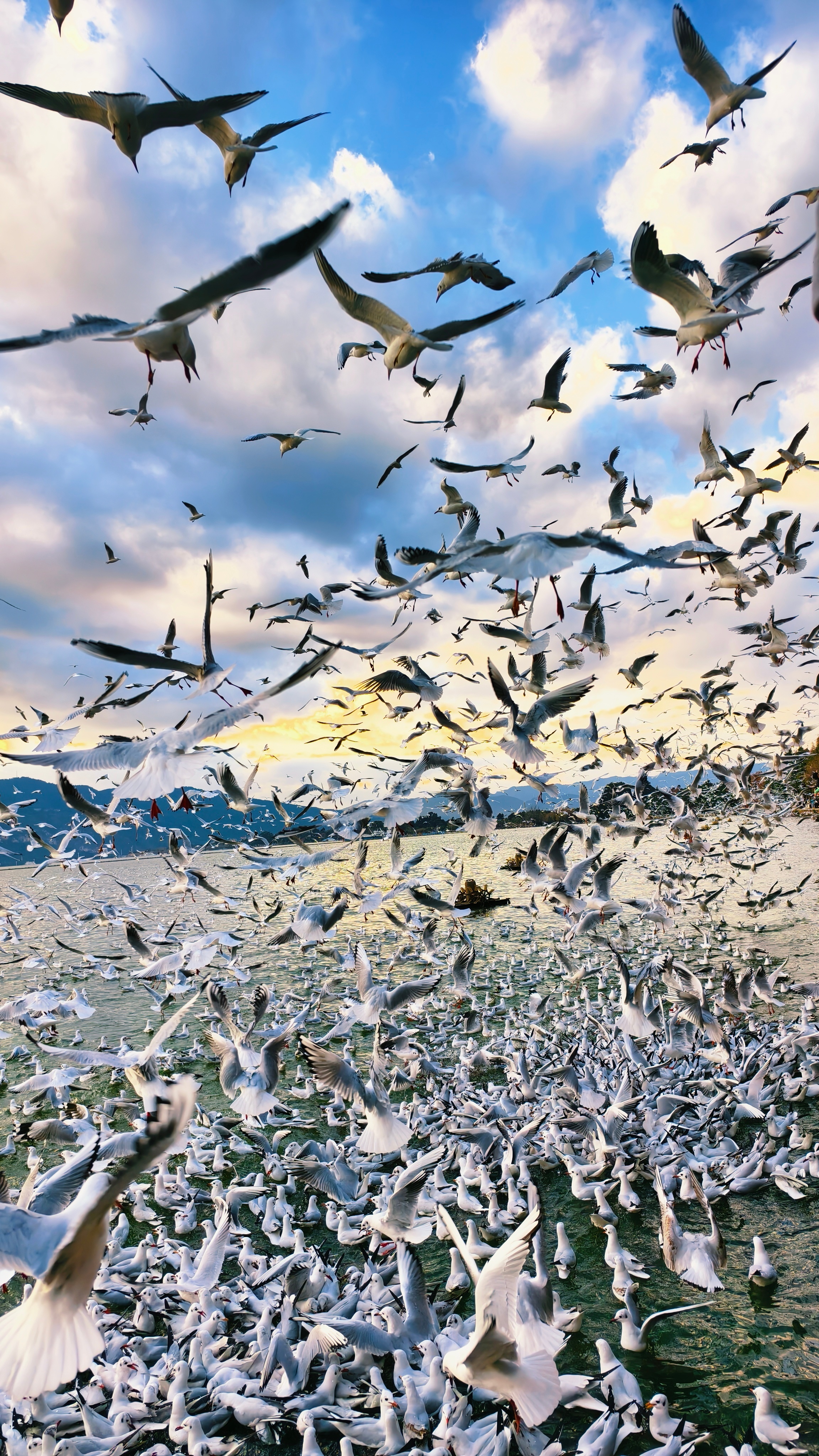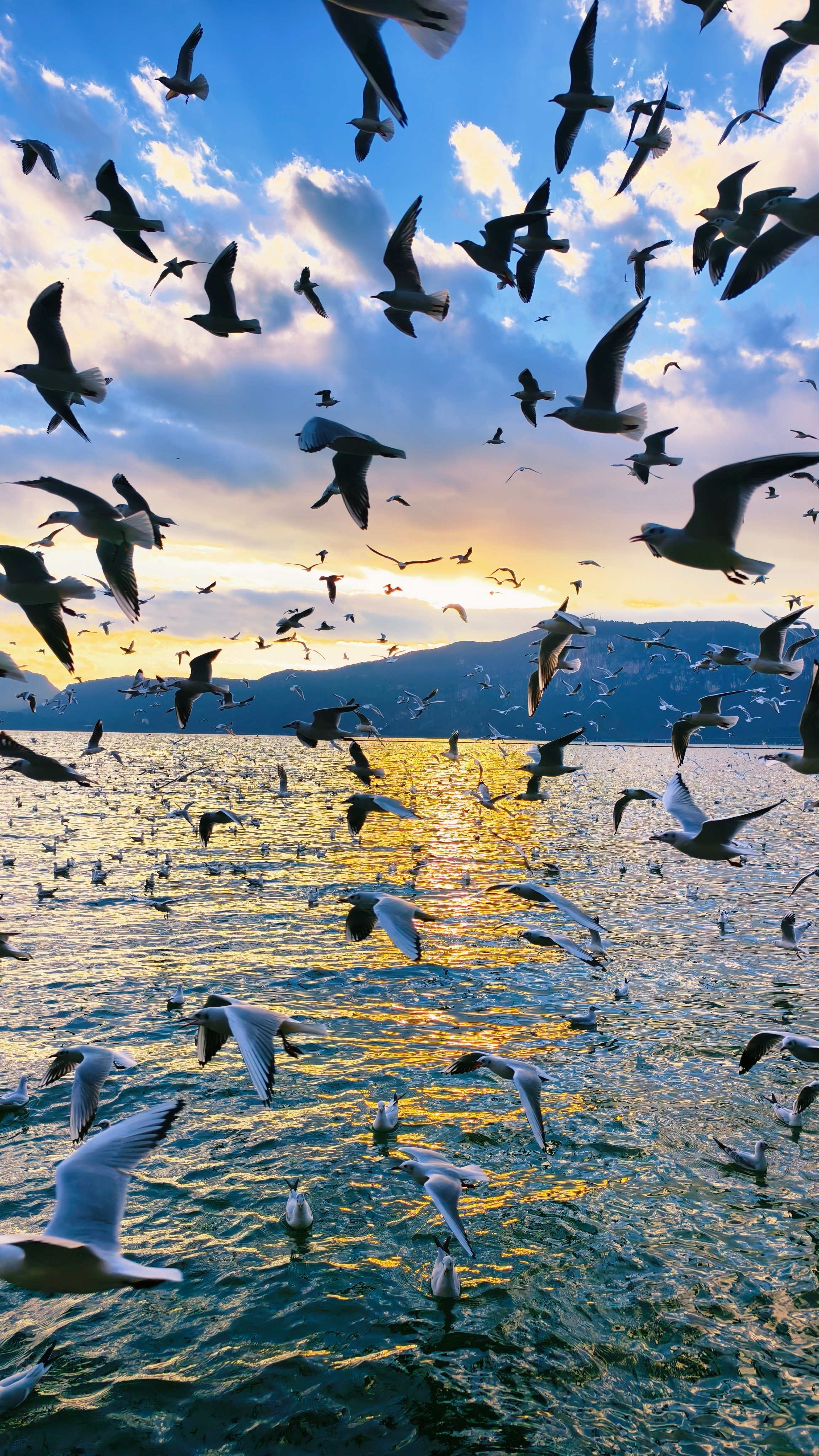 八百里滇池万鸥齐飞 冬日的滇池,因海鸥而闪耀。它们是天空中的舞者,在西山睡美人的