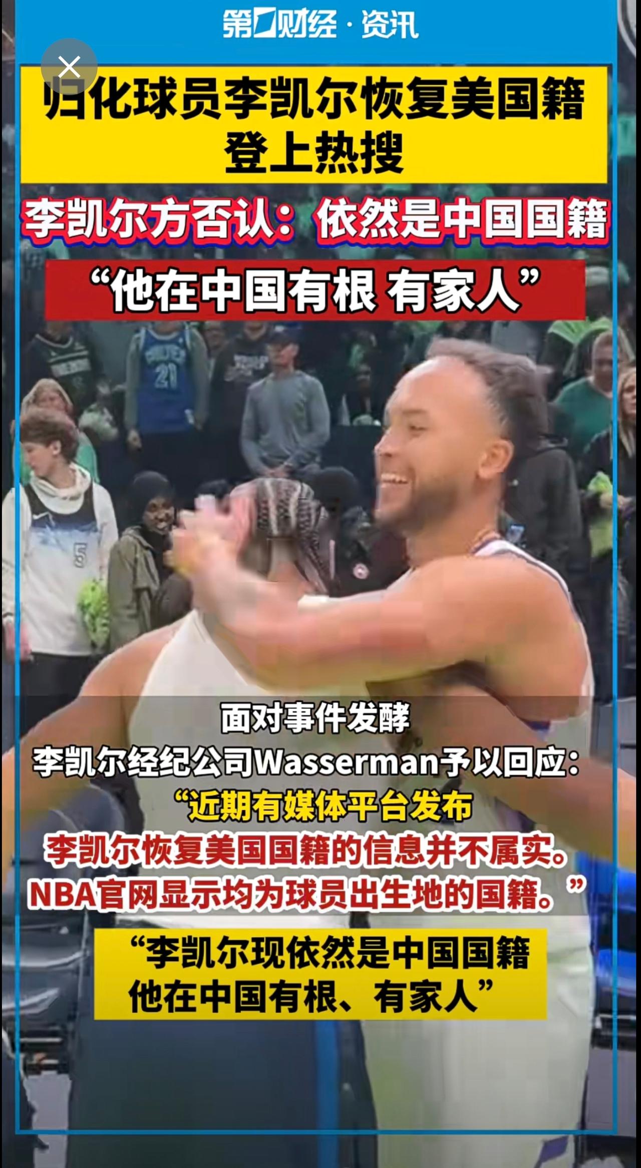 李凯尔的国籍已经更改为美国籍!此前根据媒体透露,归化李凯尔的时候,并没有官方