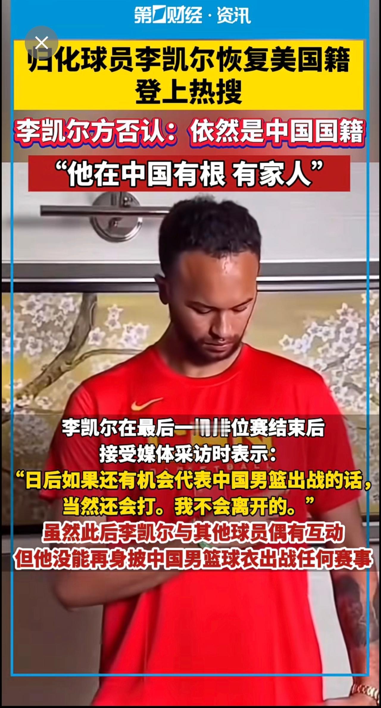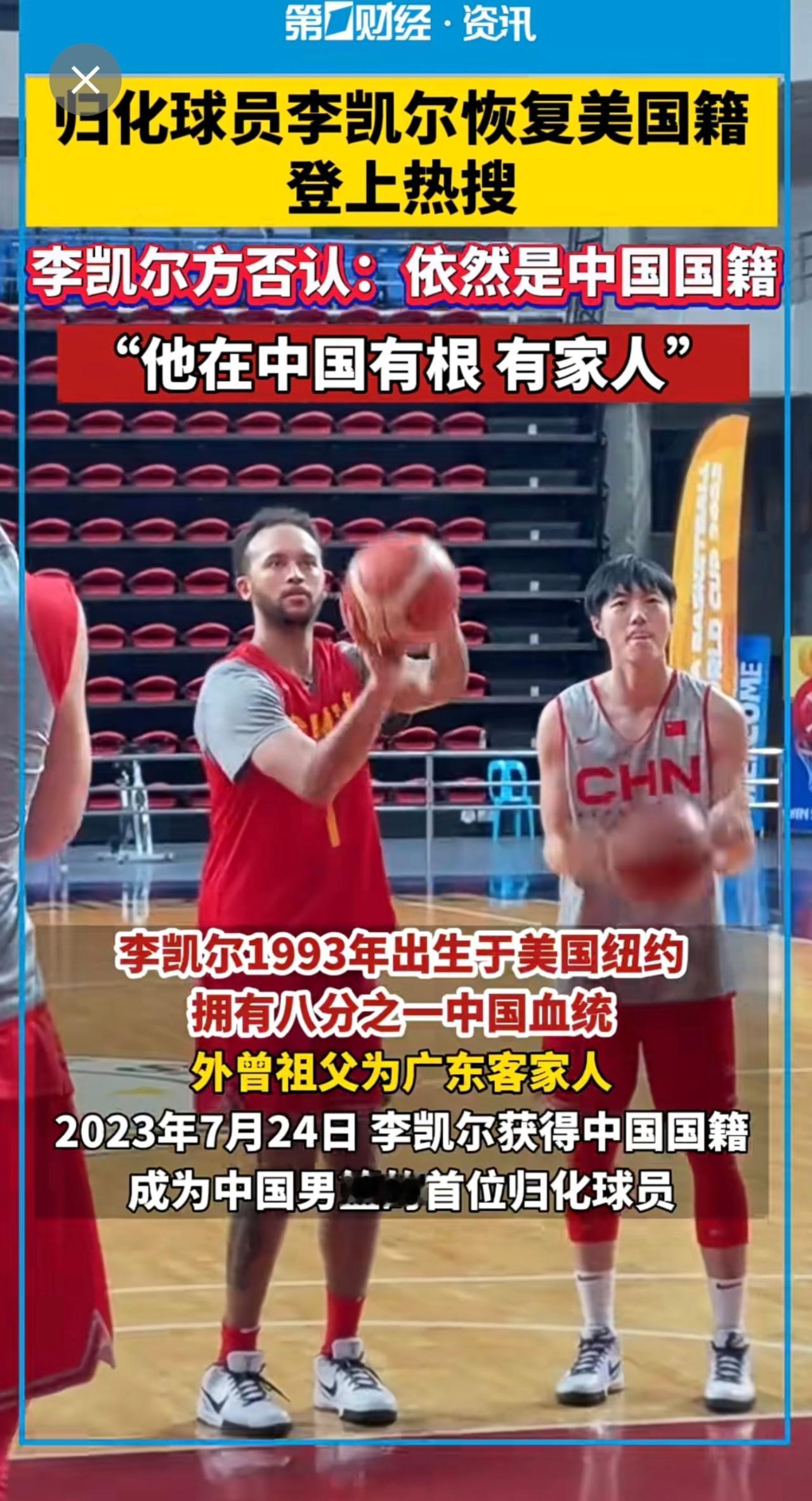归化球员李凯尔恢复美国籍登上热搜。李凯尔方否认:依然是中国国籍“他在中国有根,有