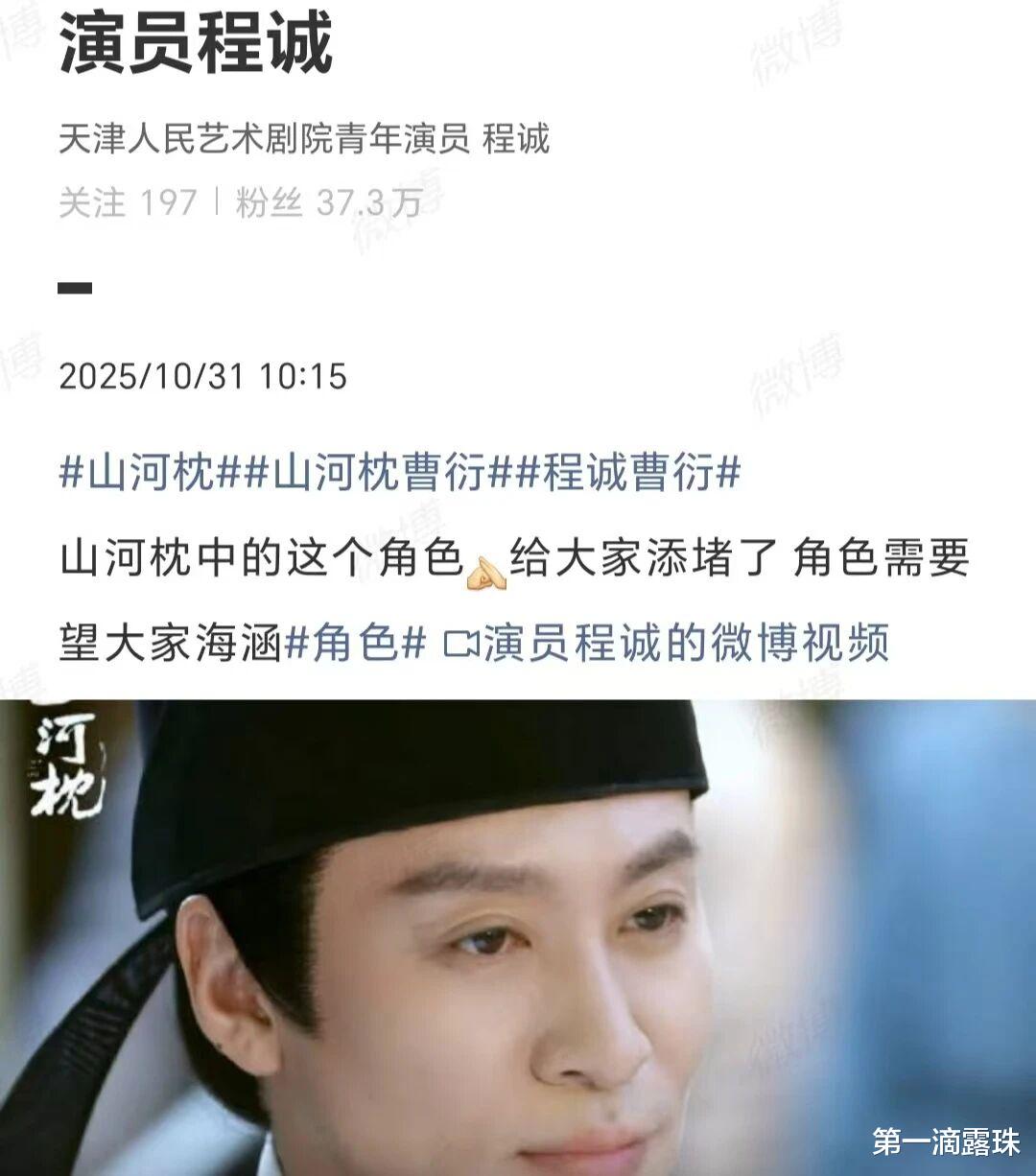 曹衍出场后,因为太让观众痛恨,程诚专门在个人社交平台发博说:山河枕中的这个角色,给大家添堵了,角色需要,望大家海涵。