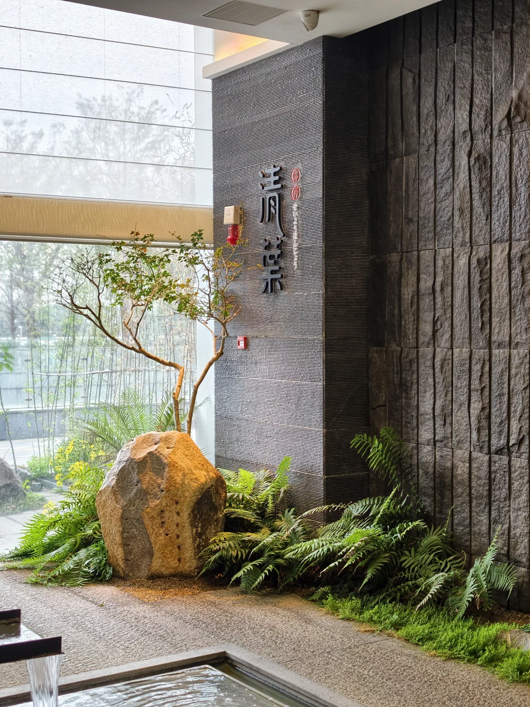 📸一踏入餐厅就被沉浸式禅意包围——玄关复刻京都苔庭,青石板路绕着中庭水系蜿蜒,铁杉原木与天然石材勾勒出素净轮廓,和纸灯罩印着日月纹样,光影流转间竟真有「天地循环、四季流转」的意境。榫卯结构吊顶下,榻榻米座位与水景包厢错落排布,推窗见景的设计,让CBD的喧嚣瞬间被隔绝,完美诠释了品牌「如叶承水,感悟四时」的核心理念。