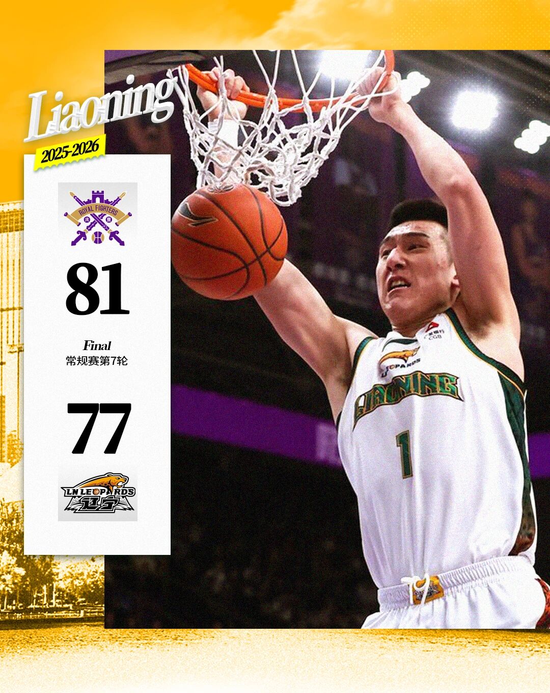 虎扑12月27日讯CBA常规赛,北控81-77战胜辽宁。