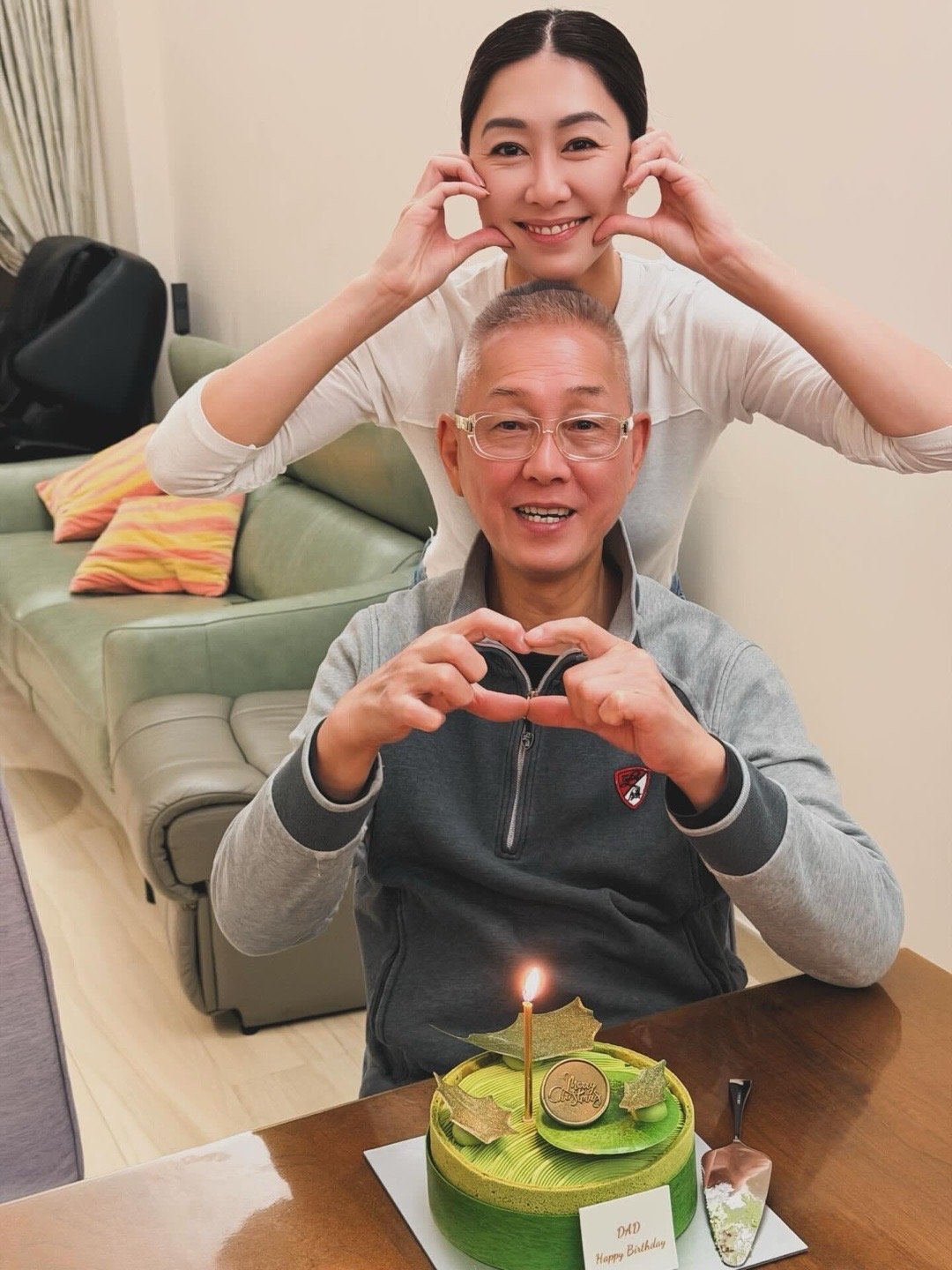 TVB视后胡定欣为爸爸庆祝70岁生日,状态真不错