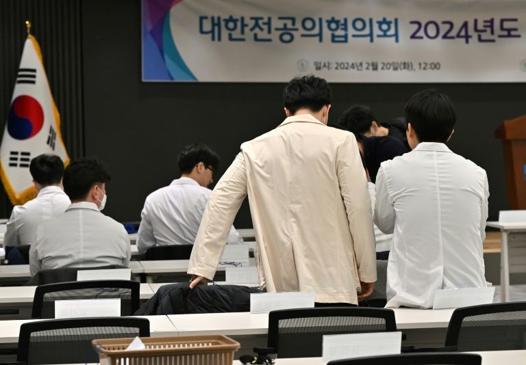 2024年2月20日,见习医生在韩国医学会大楼参加紧急会议