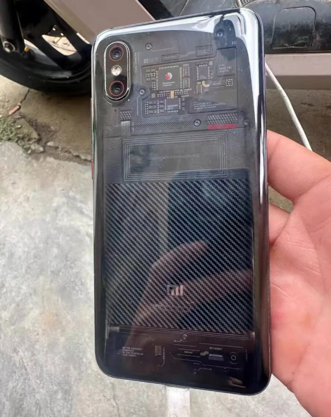 到手以后,从外观看还不出有啥问题,背面确实是一块透明玻璃后盖,里面有主板和电池装饰板,但透过玻璃看螺丝有拧动过的痕迹。