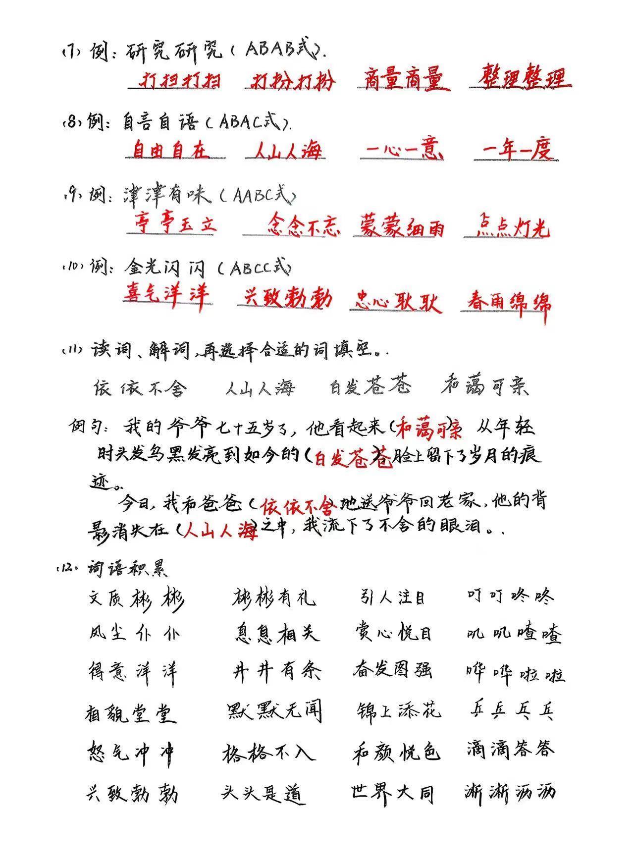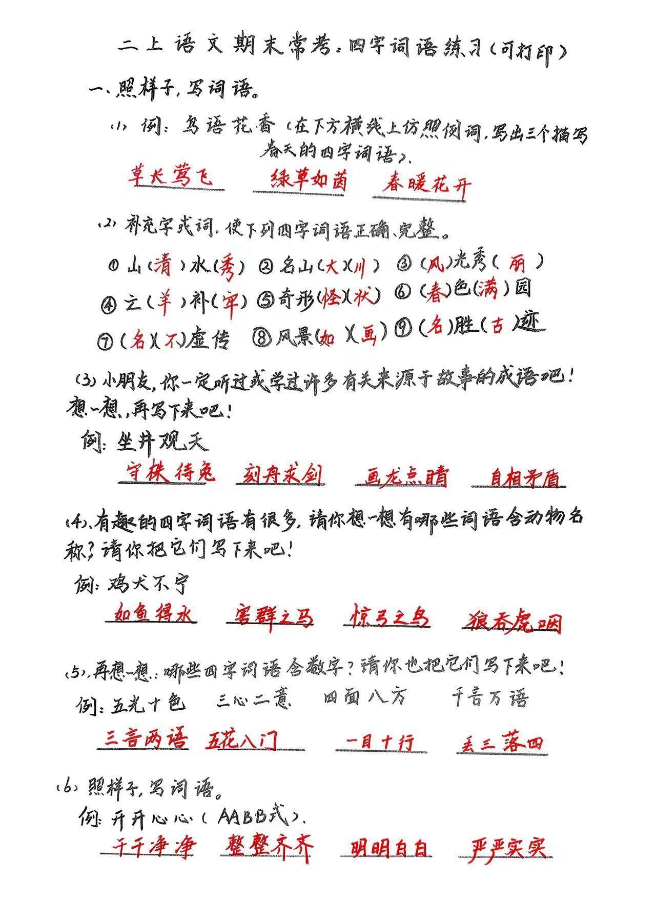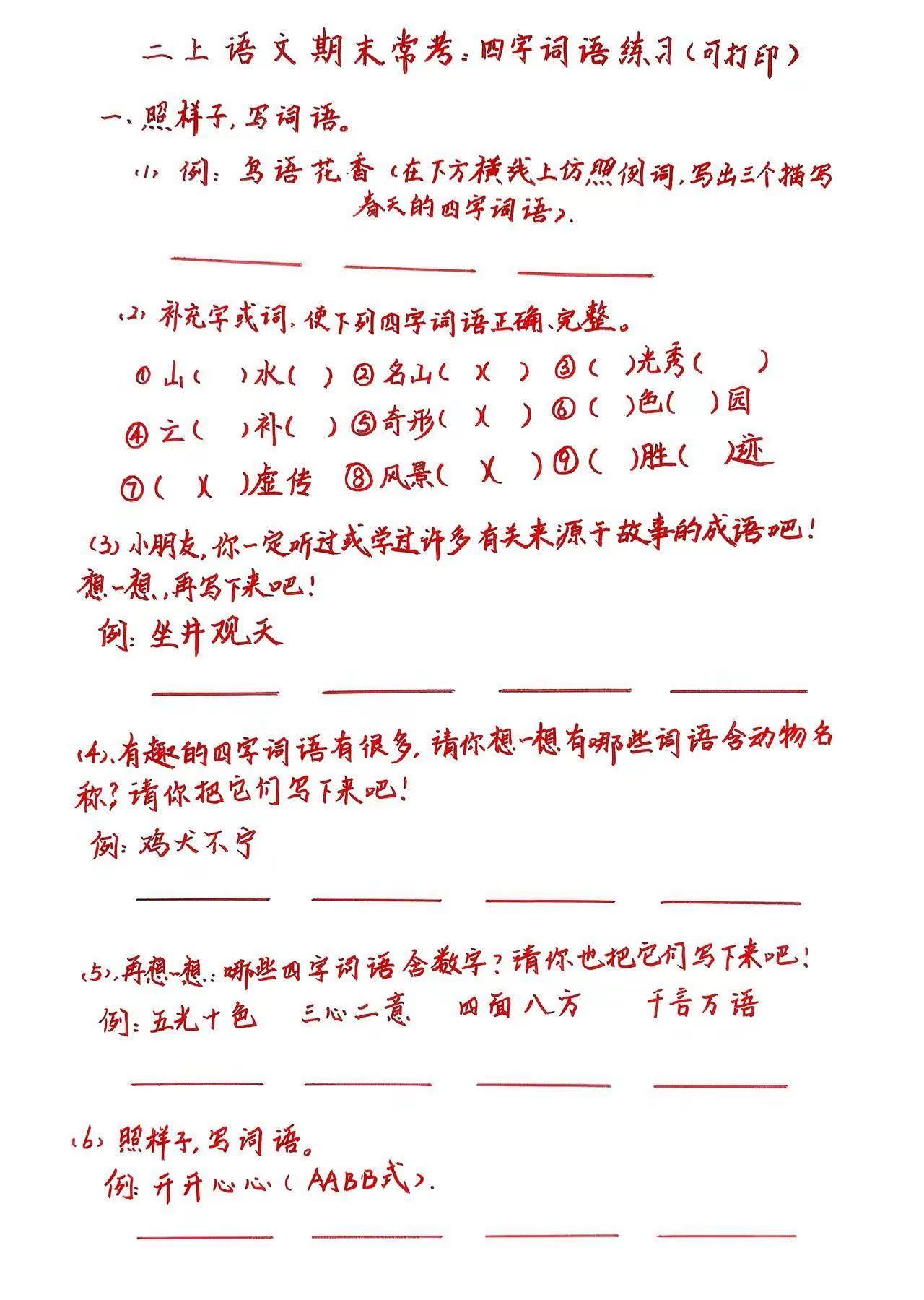 二上语文期末常考:四字词语,练习、积累