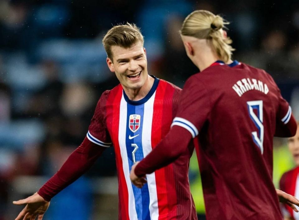 当世第一中锋哈兰德在挪威国家队延续着场均1球的逆天效率,40场39球的记录让前辈索尔斯克亚的33球纪录黯然失色。他的搭档瑟洛特完成华丽蜕变,上赛季西甲26球6助的表现助力黄潜,61场23球10助的国家队数据证明这对2米巨人组合足以撕碎任何防线。