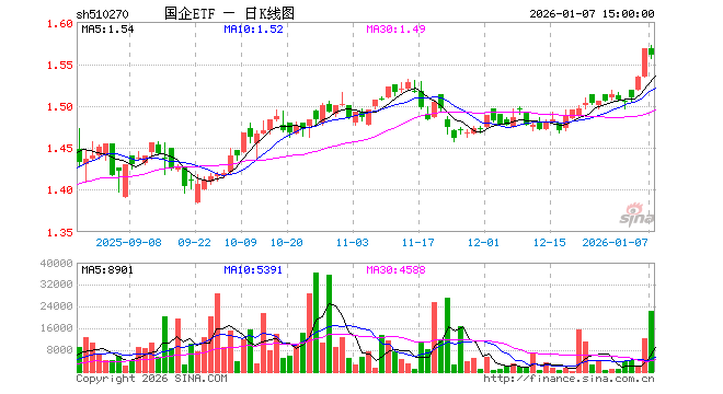 1月7日,国企ETF(510270)跌0.51%,成交额351.22万元。当日份额减少100.00万份,最新份额为1383.21万份,近20个交易日份额减少200.00万份。最新资产净值计算值为2165.42万元。