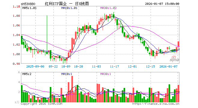 1月7日,红利ETF国企(530880)涨1.18%,成交额349.91万元。当日份额减少100.00万份,最新份额为5333.60万份,近20个交易日份额增加200.00万份。最新资产净值计算值为5460.54万元。