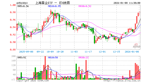 1月8日,截止午间收盘,上海国企ETF(510810)涨0.31%,报0.981元,成交额7190.32万元。上海国企ETF(510810)重仓股方面,中国太保截止午盘跌1.57%,国泰海通跌3.15%,上海机场跌0.24%,张江高科涨1.15%,上海电气涨3.53%,中微公司跌0.98%,浦发银行跌2.21%,东方证券跌3.10%,沪硅产业涨0.29%,华域汽车跌1.74%。