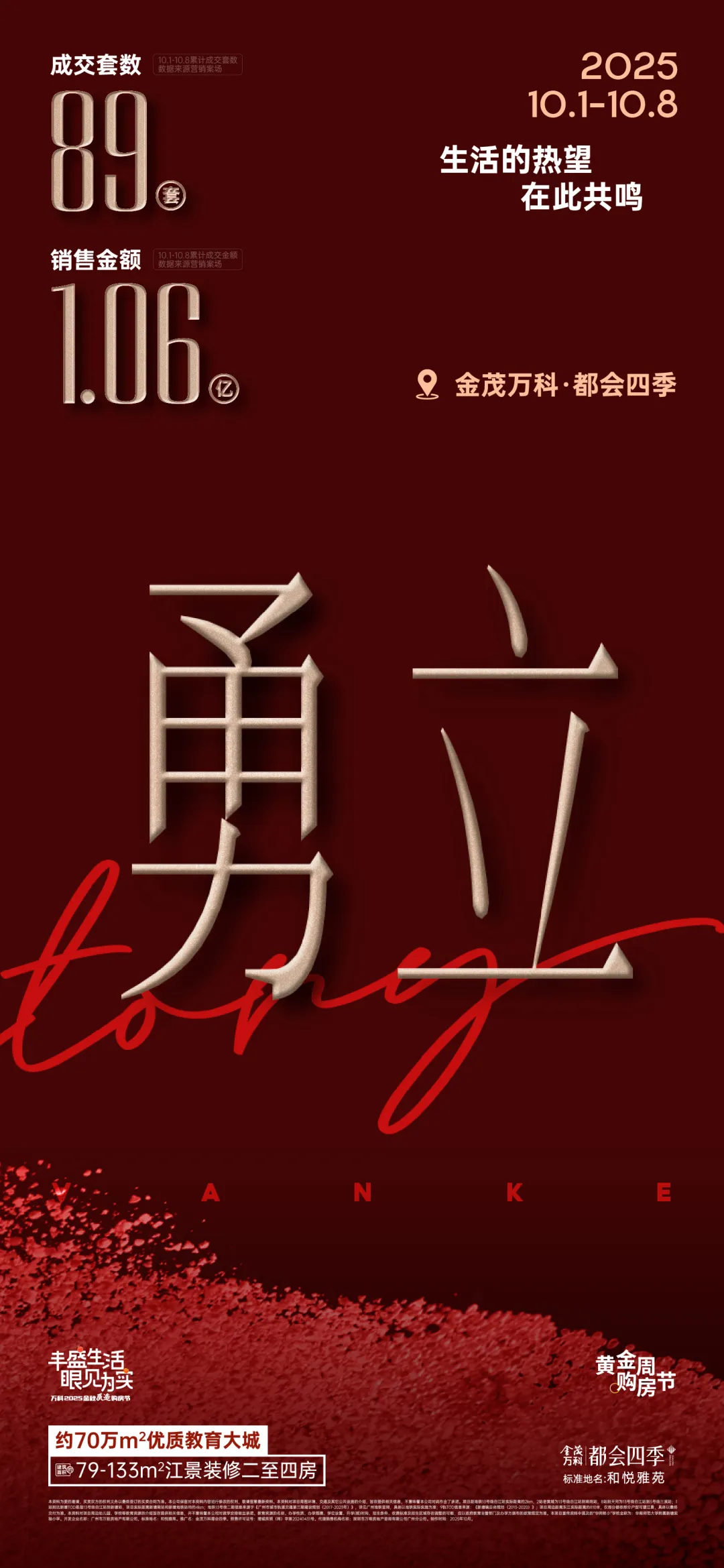 国庆期间,万科·理想花地+瑧樾府项目共计到访1206人,总成交70套,总销售额4.97亿元。