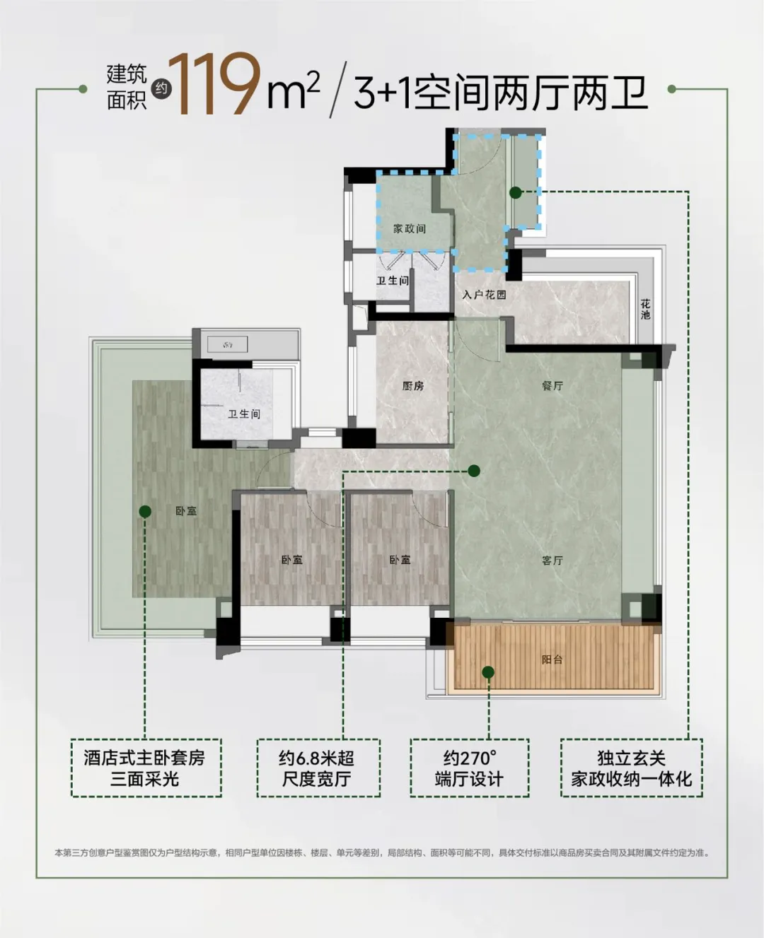 300多万,你能买到市场少见的270度客厅景观端厅设计+收纳800库+主卧3面采光。