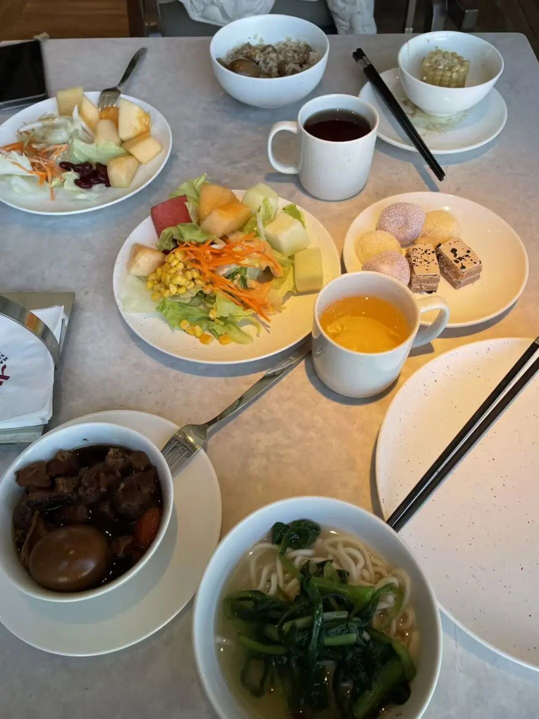 “以前觉得五星酒店的餐厅是花钱买环境,没想到现在能当成食堂来吃。”沈阳的张女士,已经把沈阳万豪酒店的午间简餐当成了固定选择。28元的价格,能吃到红烧牛肉盖饭、卤肉浇头面等限量供应的热菜,搭配无限续加的蔬菜沙拉、水果和汤品,比公司楼下20元的盒饭分量更足,环境更是天差地别——柔软的地毯、舒缓的音乐,连餐具都很精致。