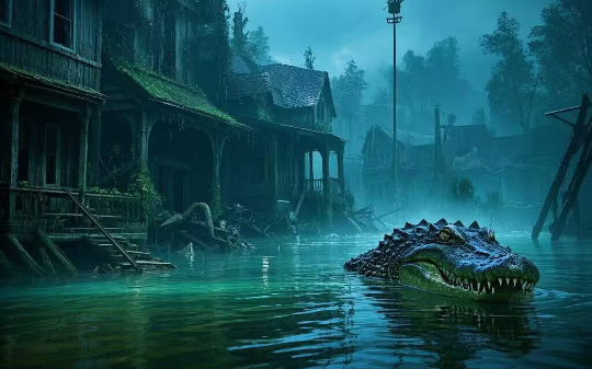 当晚,我躺在床上,翻来覆去睡不着。那只小鳄鱼的眼神一直在我脑海里挥之不去,总感觉它就在窗外窥视着我。月光透过窗户洒在屋内,让一切都显得格外阴森。