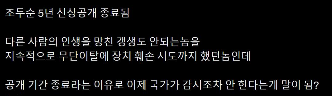 2020年赵斗淳出狱后,法院下令公开其个人信息五年,理由是犯罪手段残忍、具有精神病态倾向以及担心其再次犯罪,公开信息能很好地预防再次犯罪。
