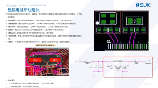 差分晶振的性能发挥,高度依赖匹配的电路设计与 PCB 走线规范,核心设计要点主要分为阻抗匹配与差分走线控制两部分。不同输出类型的差分晶振,有对应的标准匹配要求,错误的匹配会直接导致信号质量劣化、EMI 超标:LVPECL 输出通常需要配置到 Vcc-2V 的偏置电阻;LVDS 输出需在接收端跨接 100Ω 的终端匹配电阻;HCSL 输出则需要在源端串联 33Ω 的匹配电阻。
