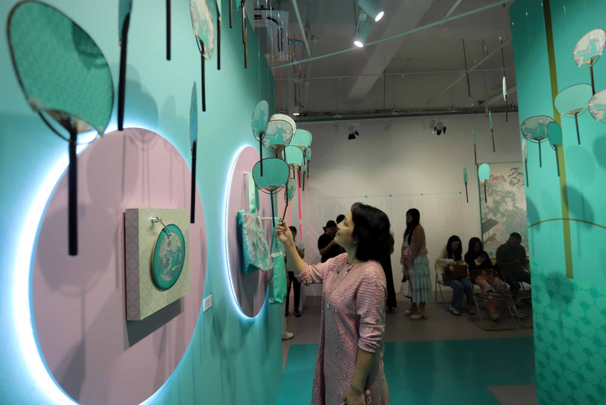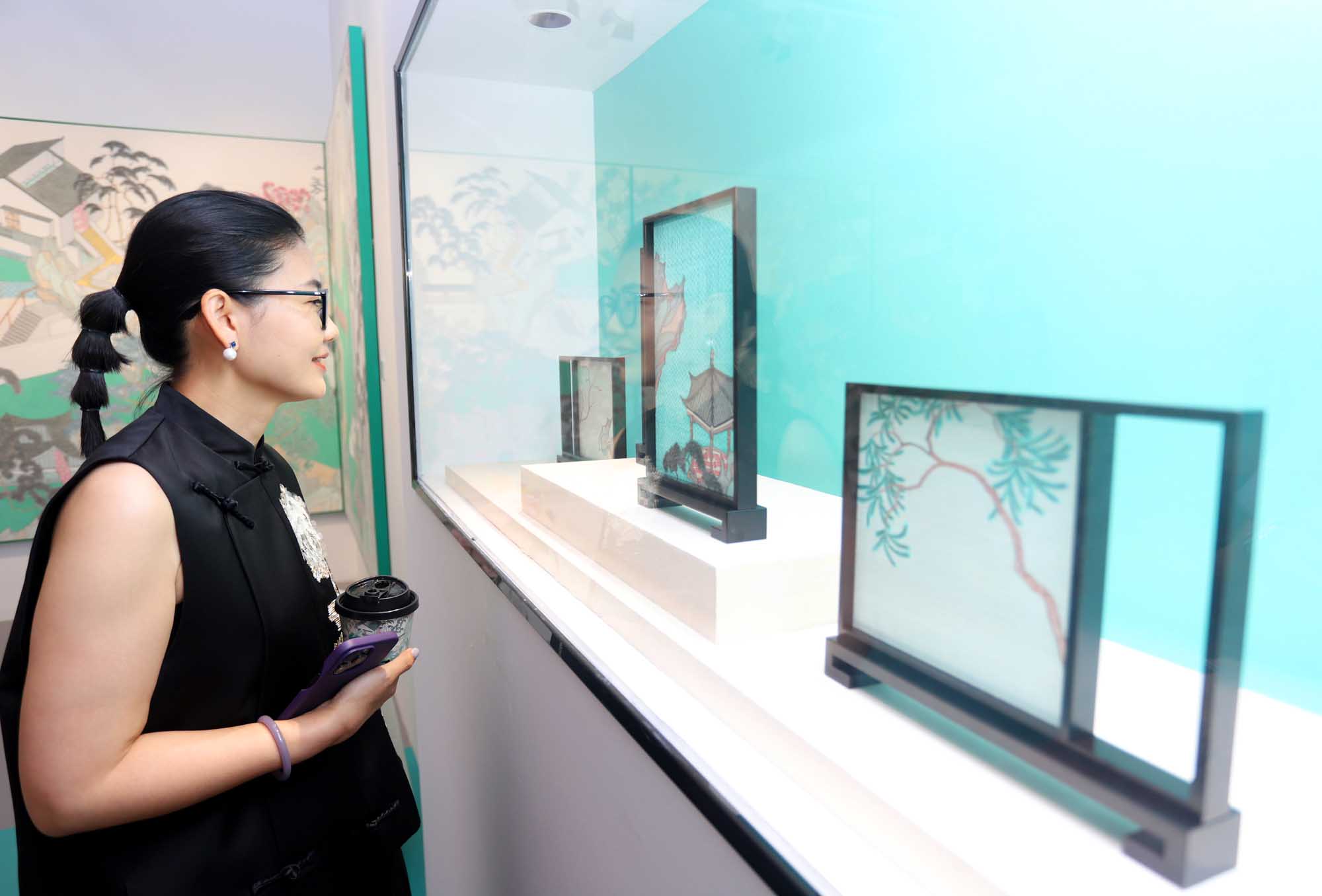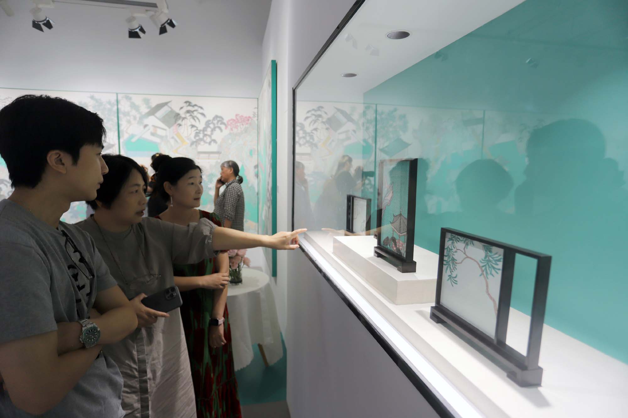 今天(2025年9月30日),观众在“后园林图景:姚永强”艺术展上参观。一场以“后园林图景”为核心命题的艺术展9月28日在苏州工业园区城市艺术会客厅正式开展。此次展览以苏州知名艺术家姚永强的园林巨作《翠影入清怀》为核心,同步呈现了围绕该作品延展设计的40余件艺术文创产品。它通过艺术与生活交融的创新实践,重构当代人对苏州园林的认知图景,引发文艺界与企业的广泛关注,展览将持续至11月16日。