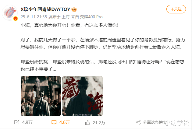 6月11日,《藏海传》正式收官,主演肖战发文告别: