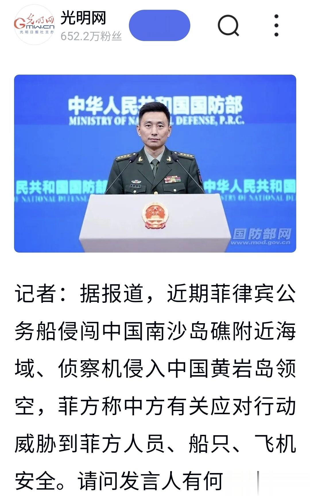 一段时间以来,菲方频繁对中方侵权挑衅、在海上制造事端,还妄图“倚外闹海”、用狐假虎威那一套对中方讹诈施压,四处散播歪曲抹黑中方的虚假信息、混淆视听。