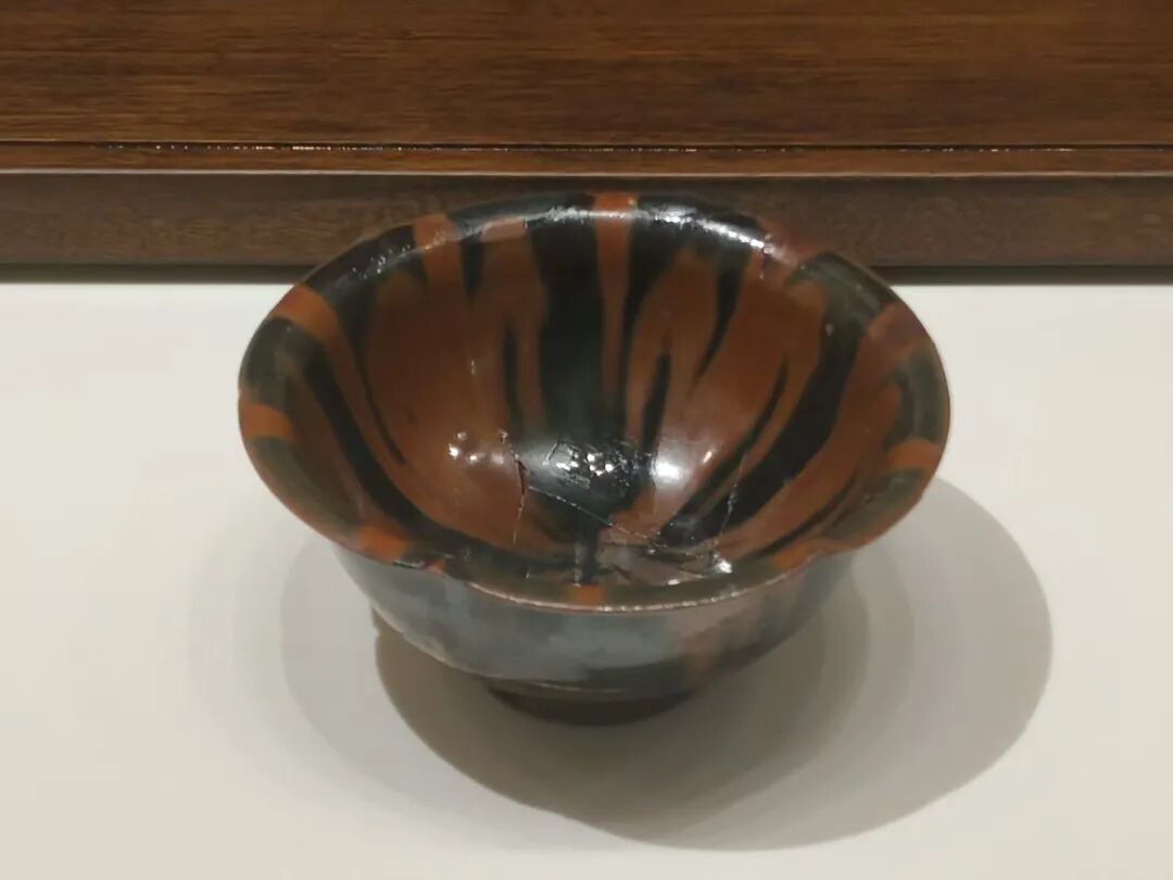 黑釉酱斑纹花口碗(宋代)