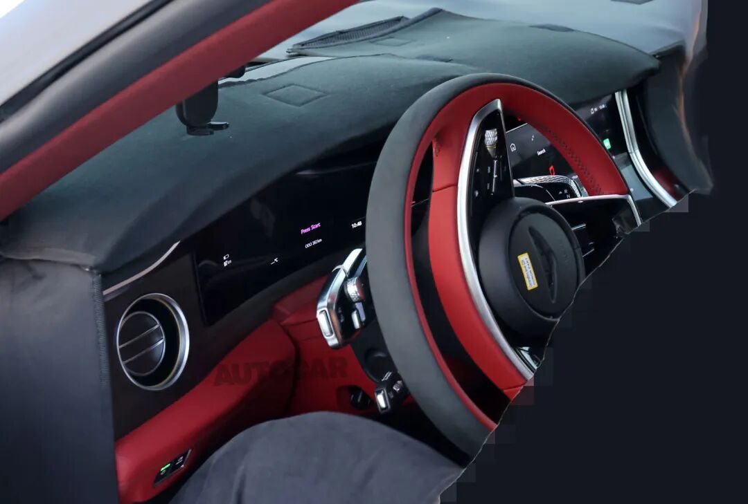这也是我们首次看到该车的内饰。图片显示,座舱结合了添越的设计特征(特别是圆形的金属空调出风口),以及来自同平台全新保时捷卡宴电动车的技术(一块14.25英寸的曲面数字仪表盘和一块14.9英寸的信息娱乐触控屏)。