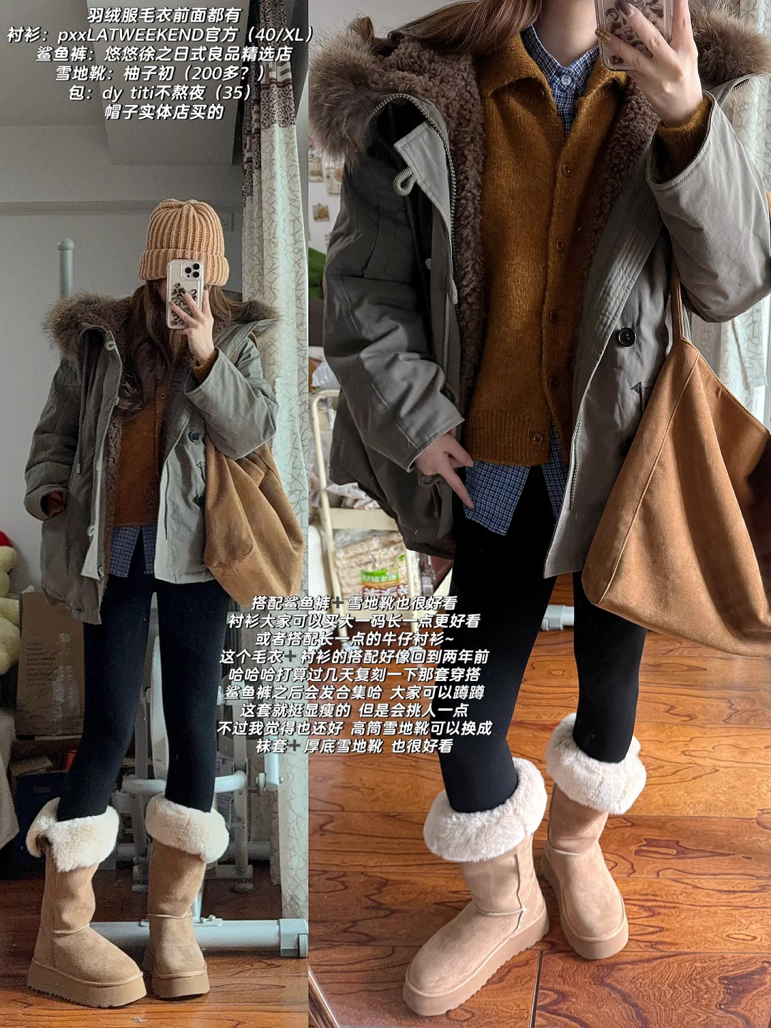 👉🏻搭配拖地裤➕普通雪地靴运动鞋:慵懒休闲感 但是没那么显瘦 毕竟上衣比较宽大