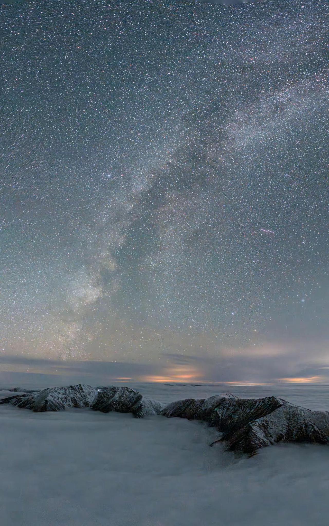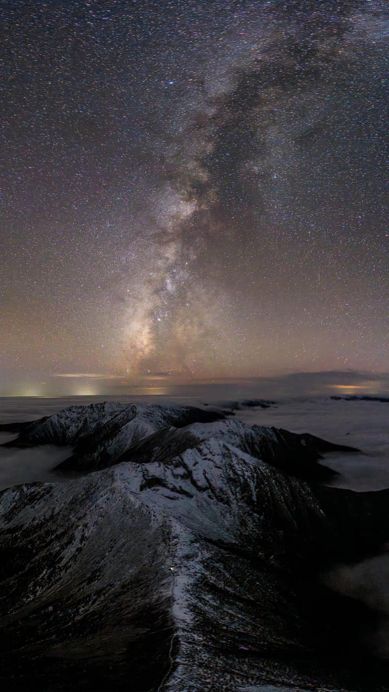再次看到2025年首次与伙伴在零下10多度的太白山顶用无人机拍银河的画面,就想给大家分享下我的拍摄故事,当时不知为何脑子里蹦出一个念头,用无人机拍秦岭主梁的星空画面;因为当时为了拍第二天太白山第二天日出,所以住在山顶,晚上实在无聊,于是我们二人商量在山顶开阔地段尝试拍摄,夜晚虽然肉眼可见银河,但想用无人机拍到拱形画面实在太难,拍摄了好多张都是不理想,当再次看到拍摄成功的画面时,震撼的画面映入眼帘,二人就像疯子一样喜出望外,我们可是第一次用上帝的视角看夜空中秦岭主梁啊;云海,雪景,星空同时出现,我们太幸运了,也许以后再也拍不到这样的画面了,感谢大秦岭赐予的画面,让我们看到了这壮阔美丽的秦岭夜景。