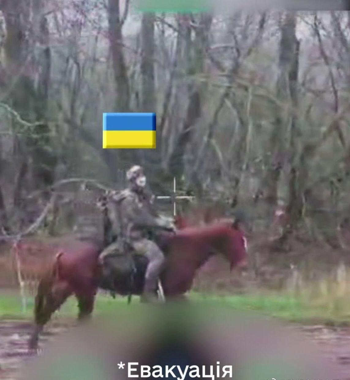 俄罗斯骑兵的马匹成了乌军的战利品。