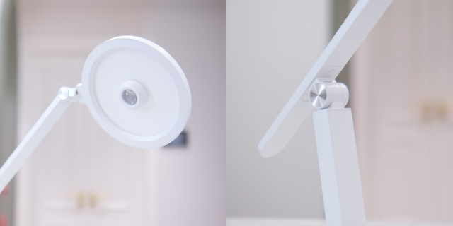 台灯的底座直径约19cm,不会占用太多的桌面空间。立杆支架高度最高可达54cm,有足够的调整孔距。灯体直径18.8cm,使得光照覆盖范围很广。