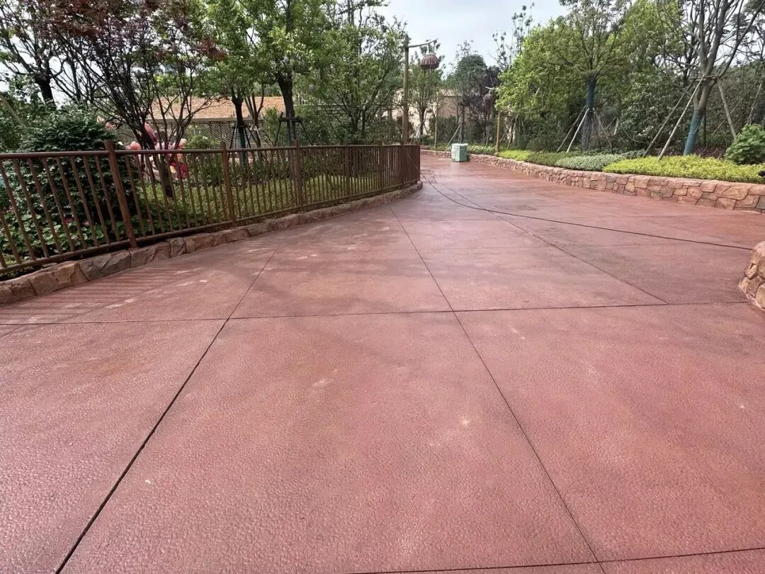 其中,荔枝纹洗砂地坪是一种基于通体彩混工艺与特制钝化材料工艺技术的防滑地坪,通过在面层铺撒特殊聚合物并进行钝化处理而成。其清洗骨料深度可根据设计要求精准控制(0.5 ~ 2.0mm),能使骨料颗粒展露且不脱落,质感高端。