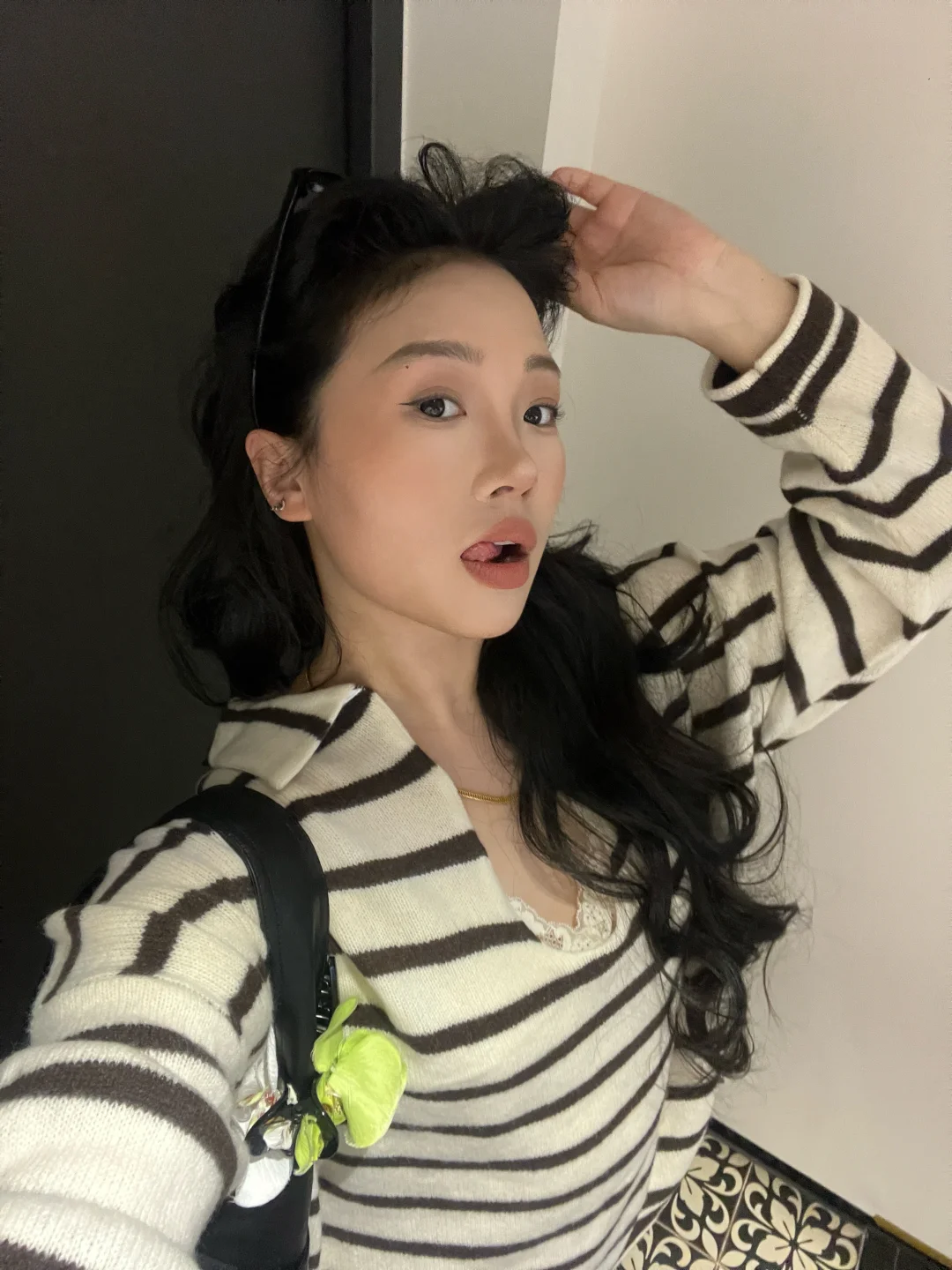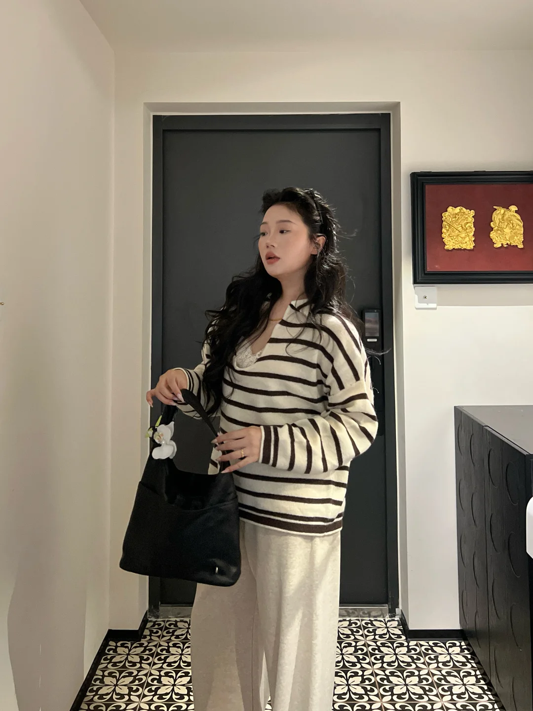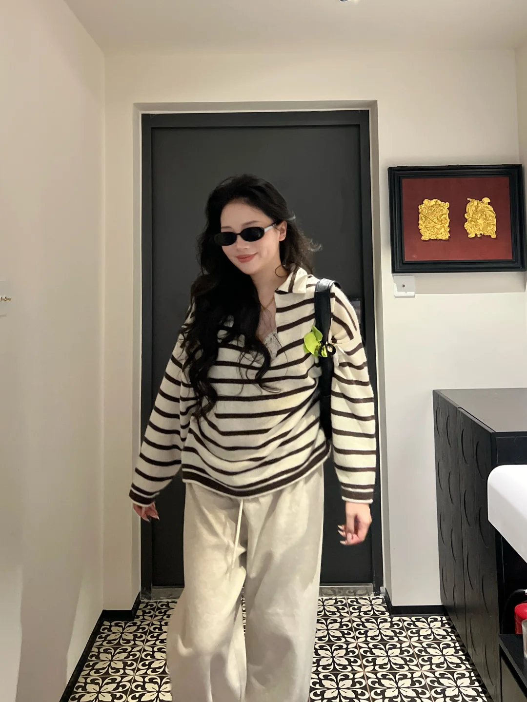 微胖女孩穿搭 条纹针织衫 条纹控