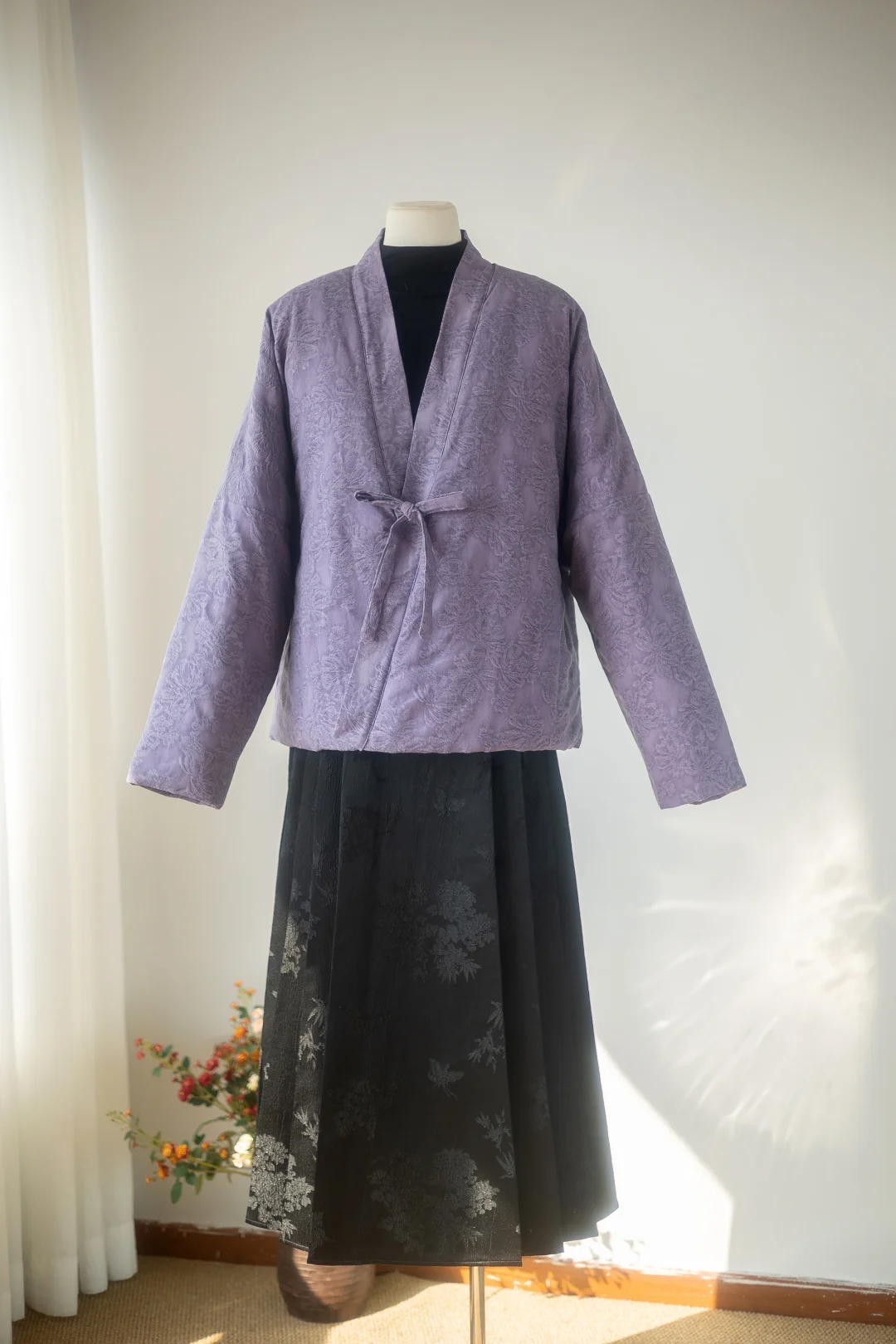 版型是经典的汉服设计,做了宽松的落肩版型,从80斤穿到150斤都没问题,肩宽的姐妹也完全不用怕,藏肉效果一级棒!