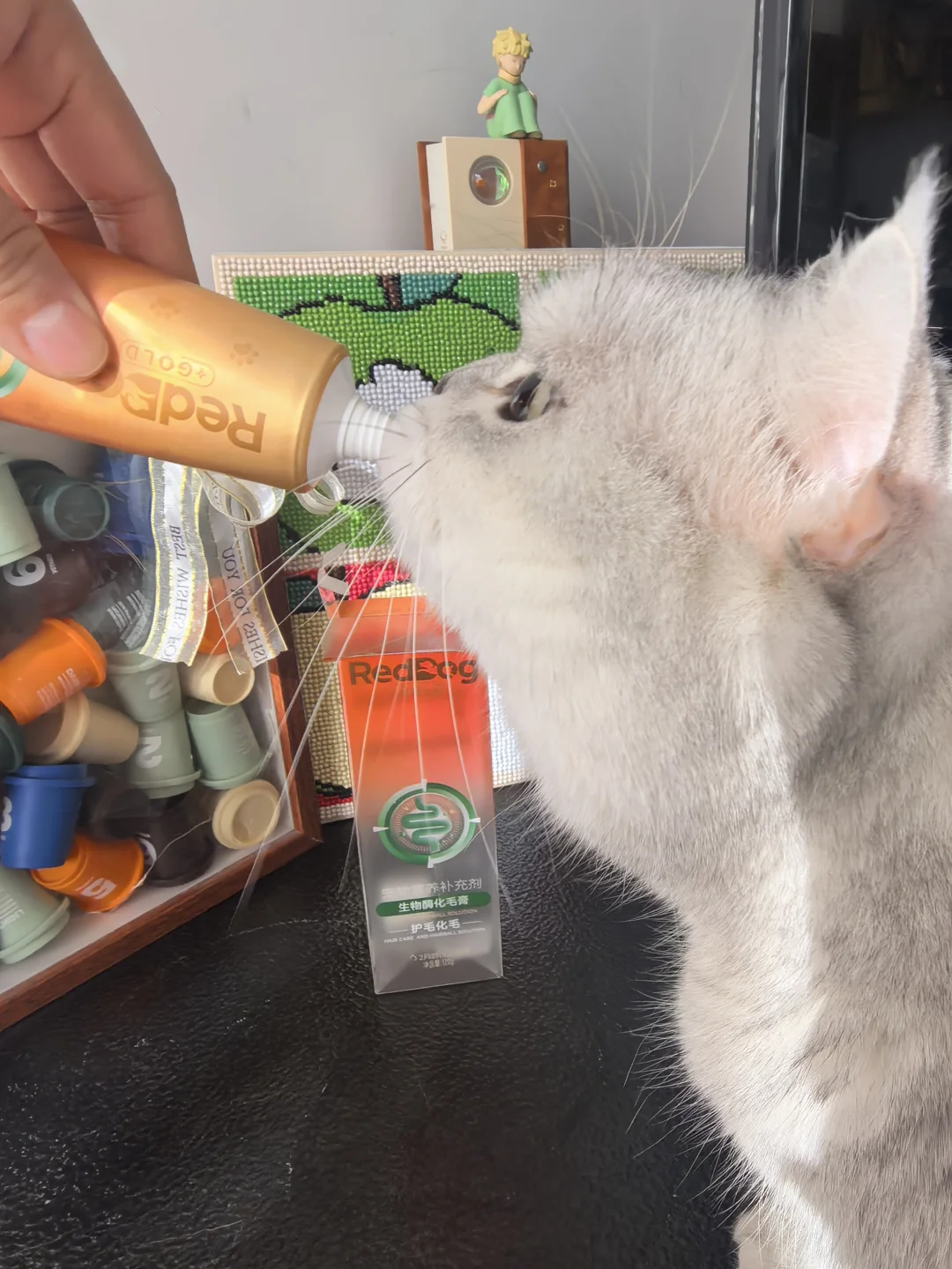不是广!纯粹自家猫试出来的 之前掉毛季满天飞 梳毛都能打结 现在地板猫毛团明显少了 最神奇是它居然主动吃…… (可能因为里面有猫草纤维?) 膏体是抹茶绿那种颜色 看了下原理说是酶解科技 能把肚子里毛团温和排出来 感觉比化毛膏那种油润的更舒服 现在每周喂两三次 崽子吐毛球次数少多了 确实能看到沙发衣服粘毛变少 养掉毛怪的真的可以试👌