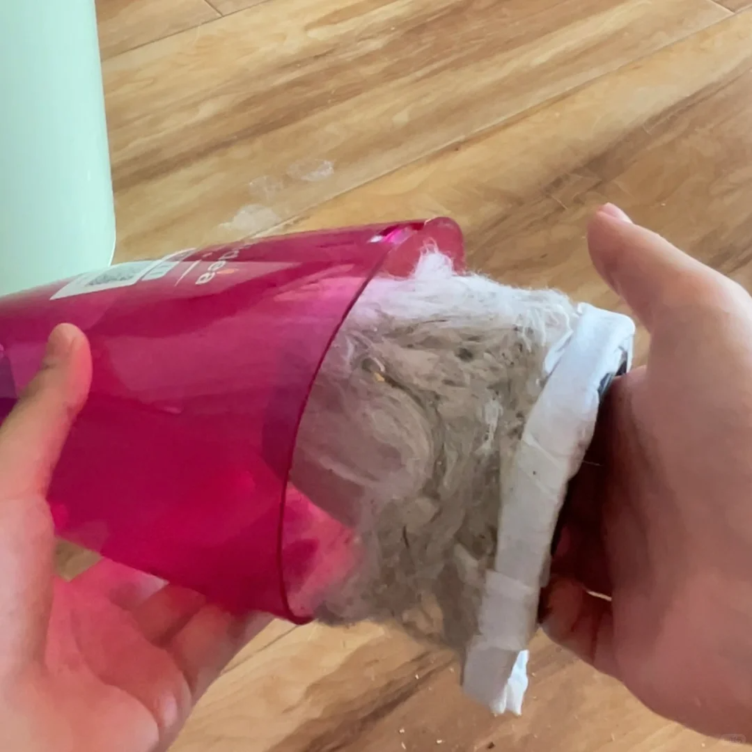 还有头发都需要用手抠出来,而现在全被洗脸巾隔绝在外。拆掉之后,里面的脏东西也一并被扯了下来。