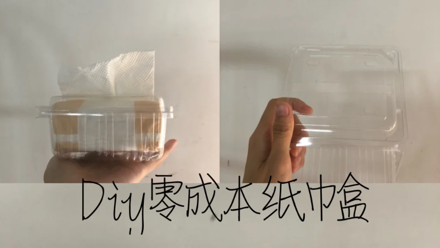 如果我们习惯在厨房台面放一包纸巾,又觉得非常占地方,那我们利用透明水果盒就能将纸巾上墙收纳。