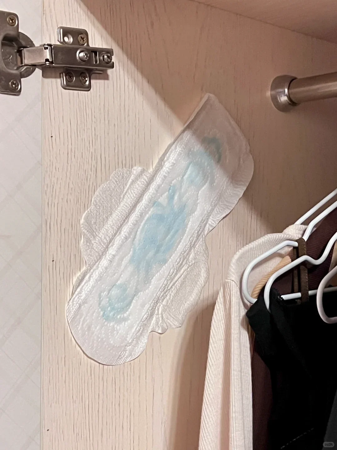 被喷了香水的卫生巾,像一个香薰机一样,打开柜门,就是扑面而来的香味,衣服也被腌入味儿了,还是那种很柔和的香味。