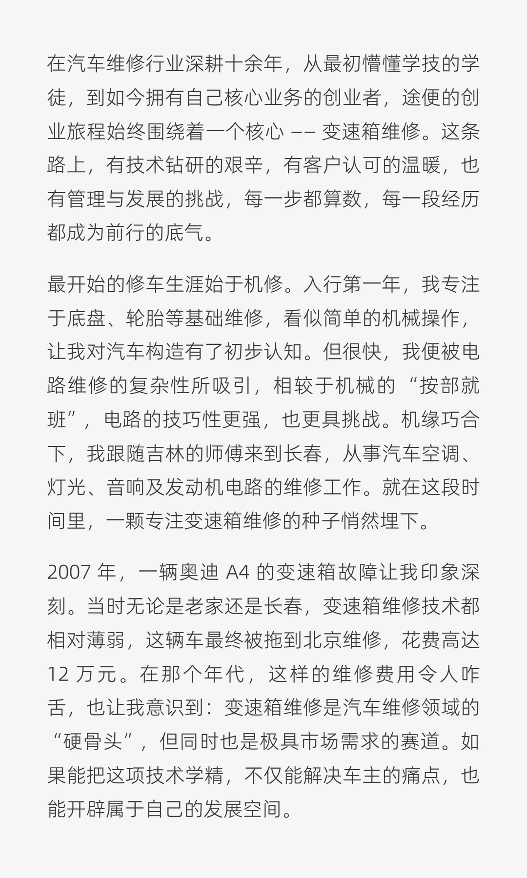 一家变速箱维修店的十年创业路,跟大家聊聊如今的途便