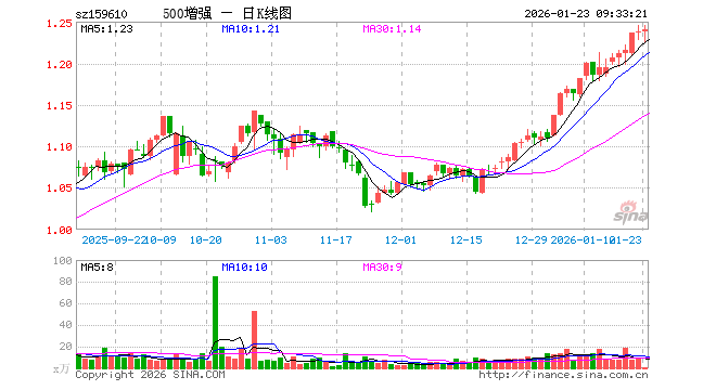 500ETF增强(159610)业绩比较基准为中证500指数收益率,管理人为景顺长城基金管理有限公司,基金经理为张晓南、郭琳,成立(2021-12-13)以来回报为23.83%,近一个月回报为14.21%。