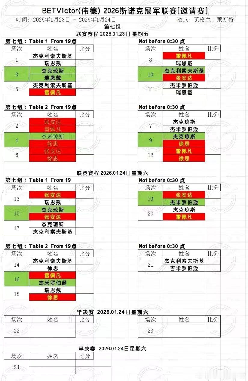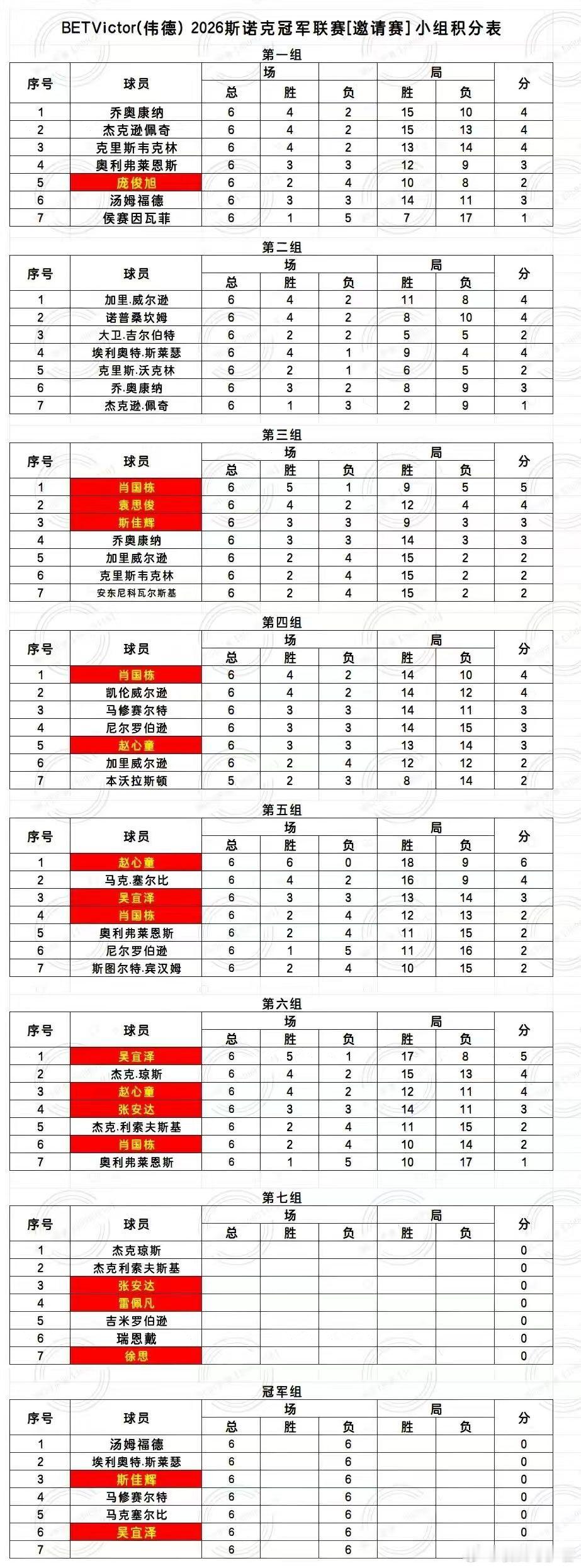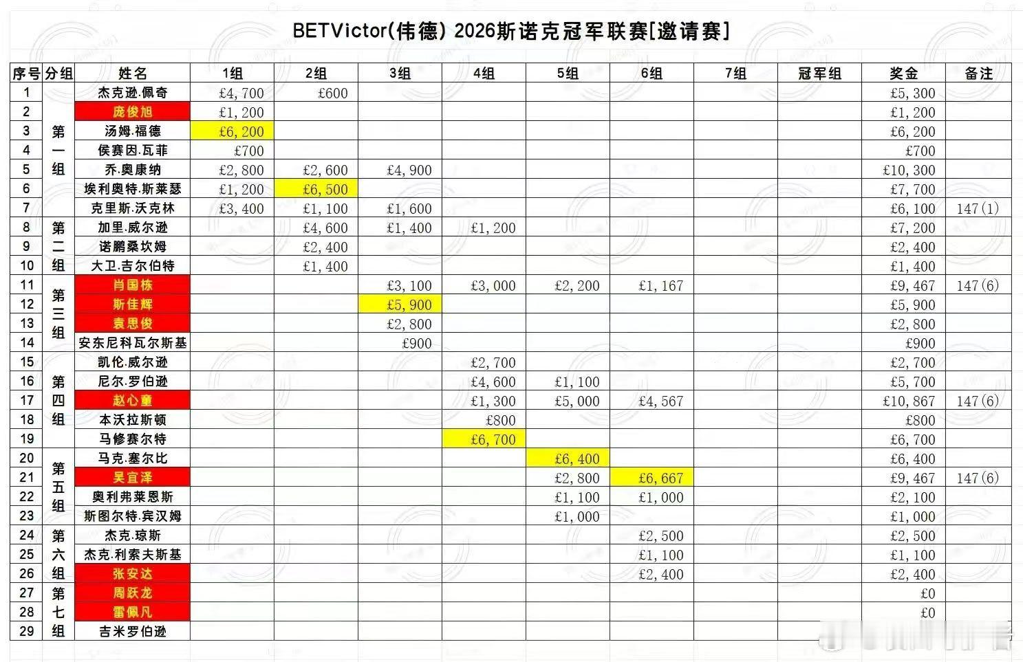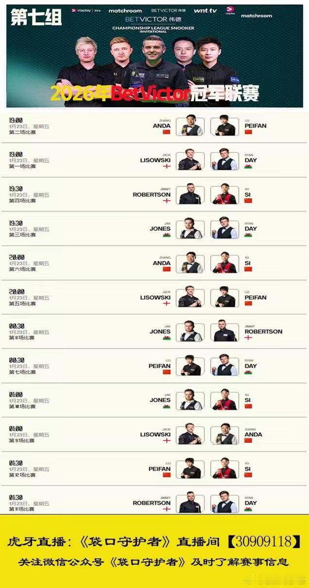BetVictor2026斯诺克冠军联赛第六组今日凌晨结束,吴宜泽胜出晋级冠军组。第七组今日开战……