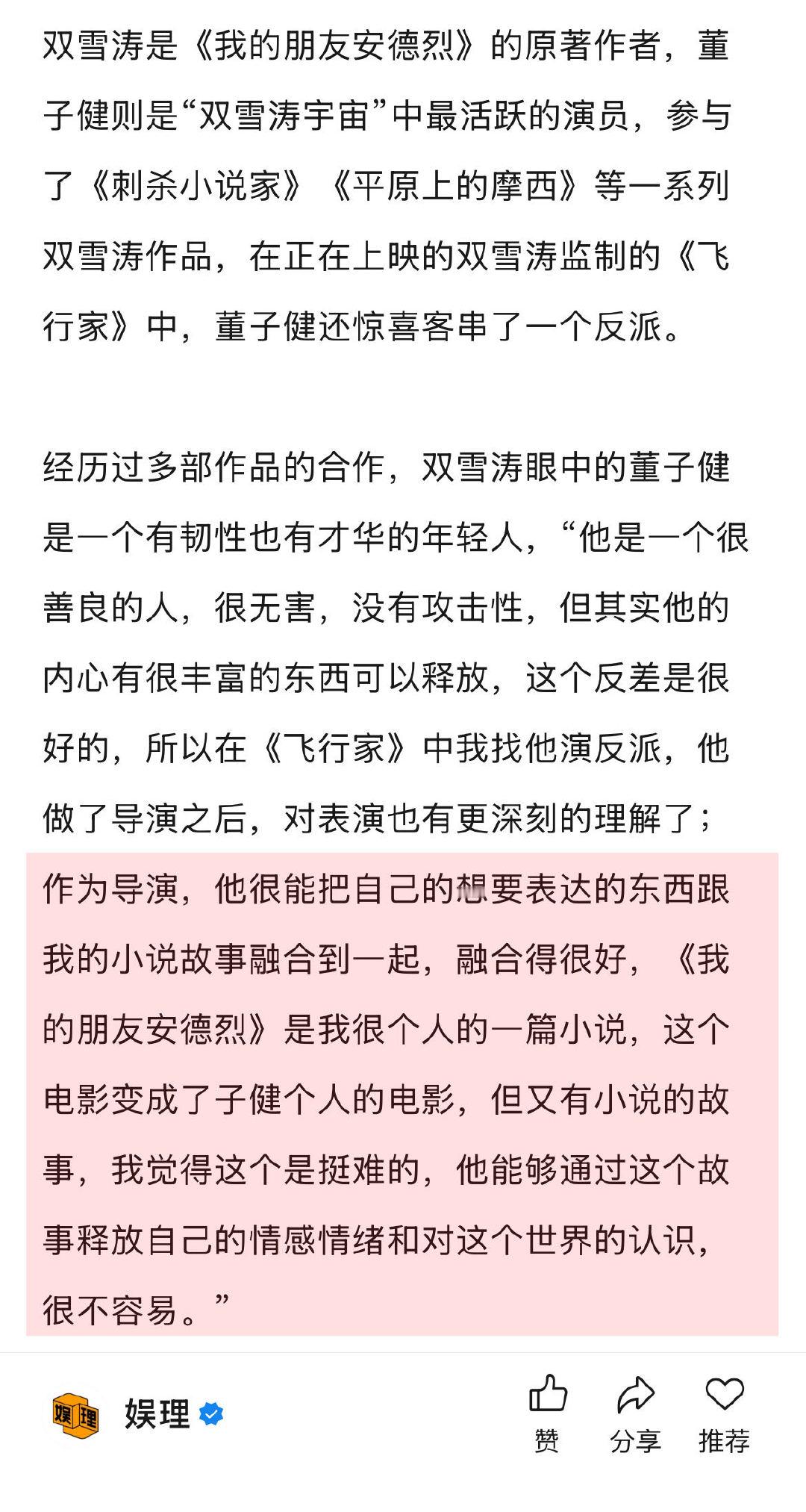 董子健说上网搜自己更多是紧张 安德烈是董子健对自己的30岁总结 因为“星二代”的身份,董子健董子健自出道以来就要面临类似“资源咖”这样的标签和负面评价。“说实话其实很多年大家已经不提及了,突然又提及了,我觉得这也很正常,但我觉得大家可能太看重这个词了,到现在我也是一步一步努力,我觉得首先时间会解释这件事情,然后我希望用自己的努力也去解释这件事情。”娱理独家↓