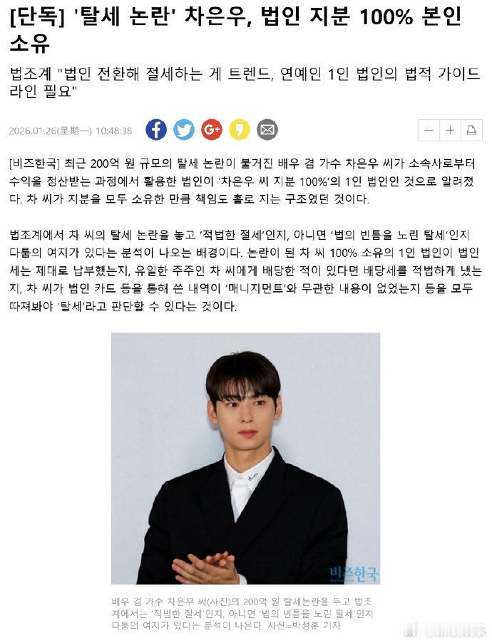 车银优聘请NewJeans解约案律所车银优将正式进行法律应对 据韩媒,车银优针对涉嫌逃税已聘请大型律师事务所,正就国税厅的征税处分准备法律程序。据悉,该律所此前曾负责NewJeans专属合约解约诉讼。此外,有韩媒指出案件争议的法人为“车银优100%持股”的一人法人,这意味着他需独自承担所有责任。