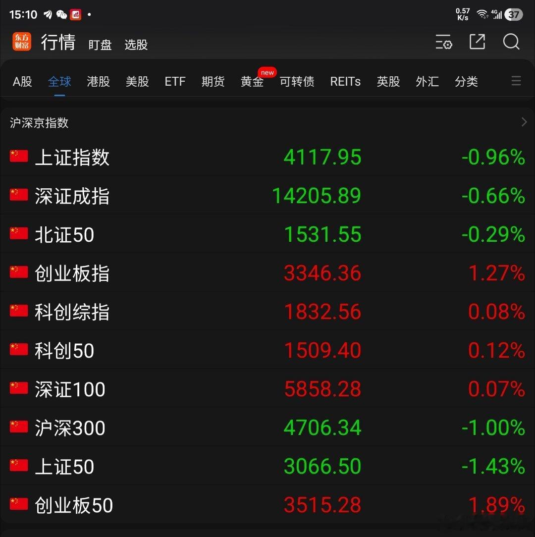 今天是2026年元月A股交易的最后一天,大盘继续震荡走势:东方财富App显示的10项指数有5项上涨收红,5项指数下跌收绿,上证指数曾一度跌破4100点至4064.78点。个股走势平平: 沪深京三交易所中,上涨的股票有2364支,比昨天多606支,其中涨幅在7%以上的有117支,比昨天少36支; 持平的股票有105支,比昨天多10支; 下跌的股票有2825支,比昨天少611支,其中跌幅在7%以上的有148支,比昨天多67支。三个市场全天的成交量为28628亿元,比昨天缩量3969亿元,又一次失守3万亿元关口。A股大盘继续调整震荡,成交额下降。个股照旧跌多涨少,可见调整还处于进行式,多看少动为佳,期待下月春节行情来临