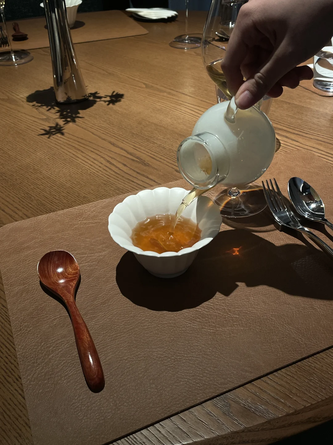 东海岸新店 暗调空间+温柔灯光 九道式套餐完全击中味蕾记忆点 从环境到服务都透着用心 二楼有鸡尾🍸 周五六晚有爵士驻唱 套餐私心挚爱TOP2👇 ▪️炭烤低温鲍鱼|肉质弹嫩带着浅浅焦香 ▪️贵妃蚌茶碗蒸|鲜甜滑嫩 太适合约会或闺蜜小聚🥂 吃完已经开始想下次什么时候来了~