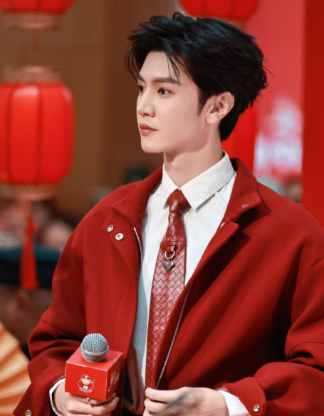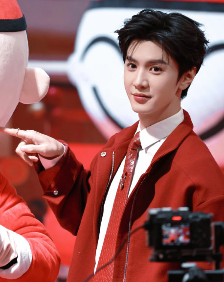 陈哲远今日穿搭红红火火陈哲远重庆线下活动路透陈哲远一身亮眼红色造型亮相重庆线下活