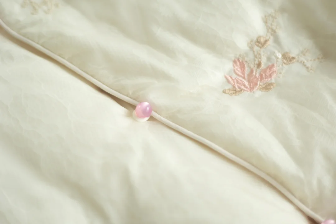 圆领斜襟设计,自带一种清冷又温柔的气质