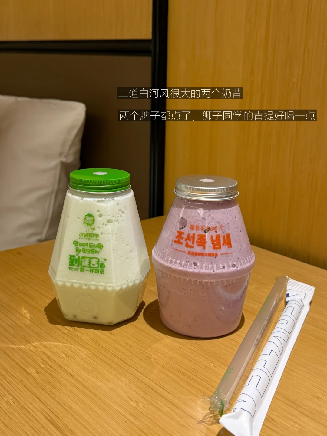 在二道白河也吃到了一家好吃的烤肉图15(吉祥烧烤,吃了153💰吃到撑,人太多了,需要拼桌)环境倒是一般,但是我吃完烤肉走出来,发现这边的烤肉店装修设计几乎都是差不多的。奶昔也是二道白河比较出名的,两个品牌我都点了,试了口感之后,我发现小狮子味道更好一些,而且他🈶爆珠。