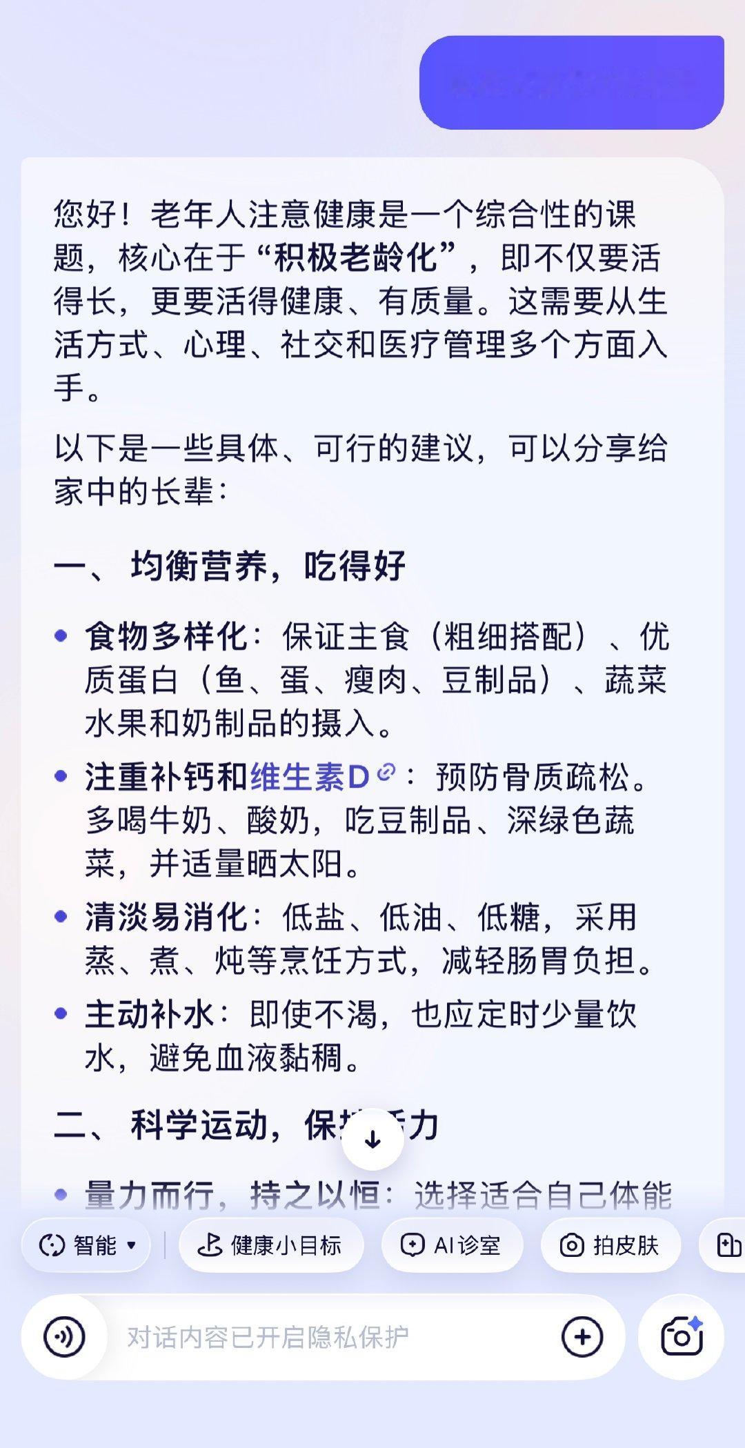 春节带阿福回家的理由 何老师说,过年最好的礼物是陪伴与健康。这位AI伙伴就像一位智慧的家庭成员,能听懂家乡话,耐心地给父母解释体检报告,帮他们辨别网络上的健康信息,让我们的孝心变得更具体、更持久。