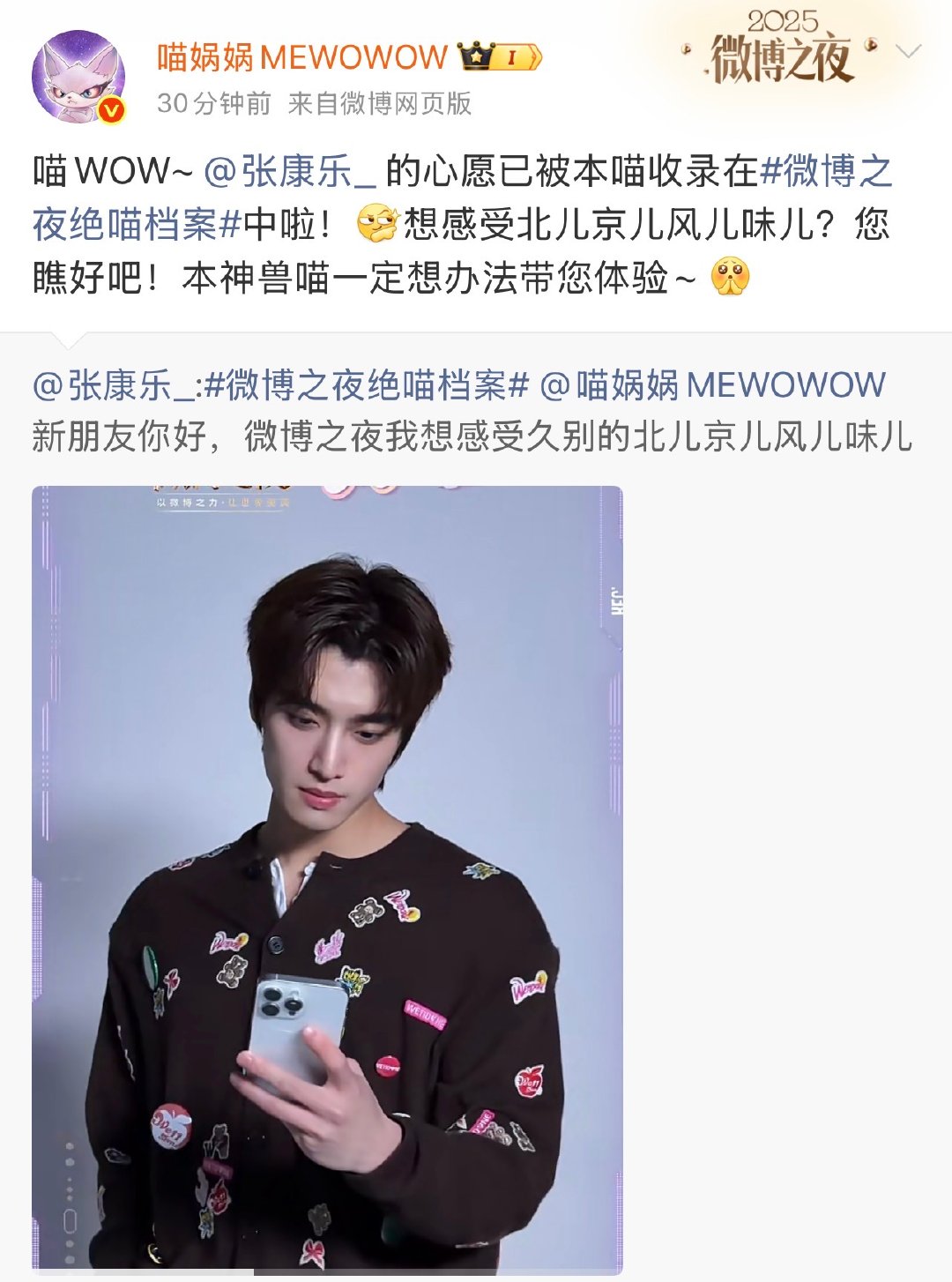 微博之夜绝喵档案 喵娲娲带着绝喵档案来啦!李兰迪、张予曦、周柯宇多位艺人的期待全珍藏,微博之夜现场解锁专属圆梦时刻,太期待啦🥰