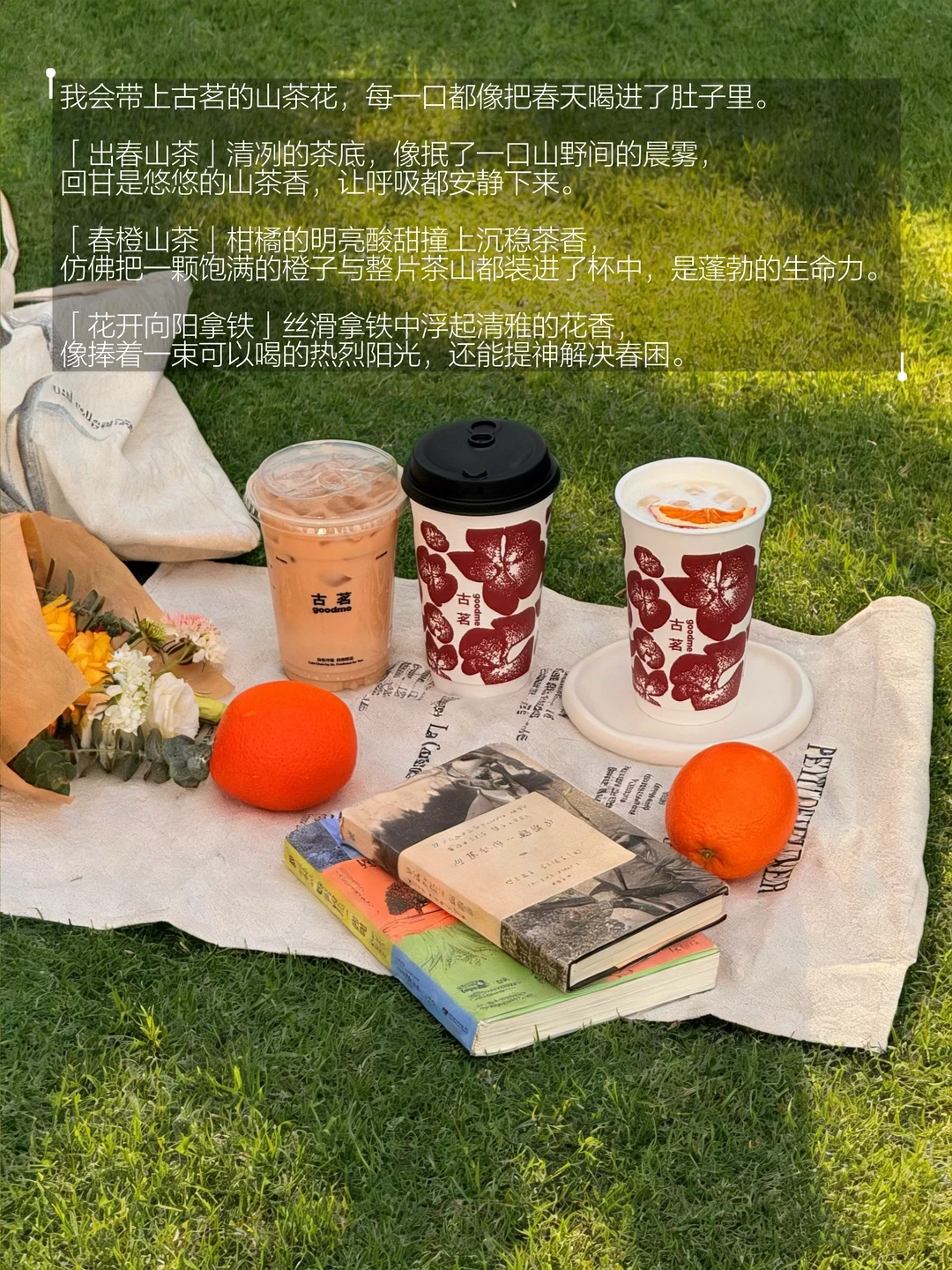我会带上古茗的山茶花,每一口都像把春天喝进了肚子里。「出春山茶」清冽的茶底,像抿了一口山野间的晨雾,回甘是悠悠的山茶香,让呼吸都安静下来。